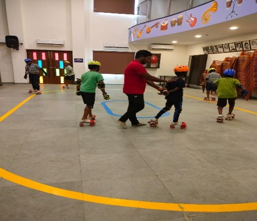 Hamsini happily attended her summer camp. She would love to get ready and leave for school. Teachers said she took part in almost all the activities with joy. She ate her lunch herself. The special thing about the camp was she re-started skating.