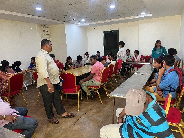 Followed by the art and craft activity, Ms. Lekshmi Ramesh introduced the participants to transaction analysis. She explained how communication, as a transaction, takes place from various 'ego states'. She explained how they get developed right from childhood, through our life experiences. The three ego states, namely, the child, the parent, and the adult emerge unconsciously during a transaction (communication) without us ever realizing as to why we take stance in a particular ego state. Understanding the ego state from where we are functioning and from where the person opposite is functioning from helps make the communication take place in manner free of friction. The participants shared their feedback and were very interested to know more.