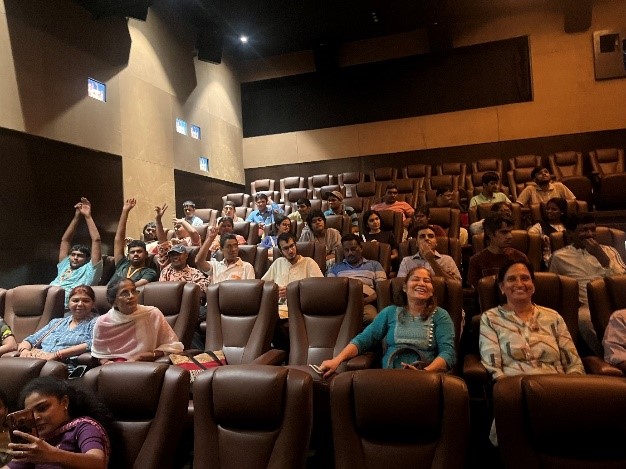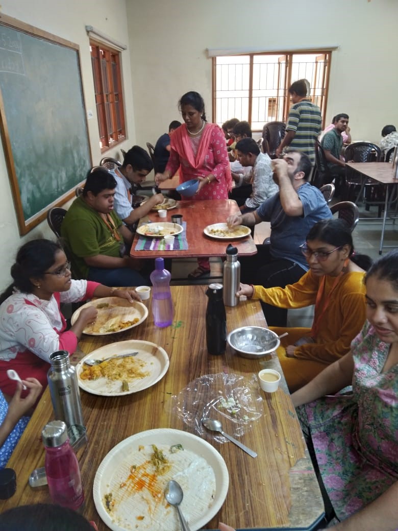 As the Academic year came to an end our last monthly field trip was decided to be fun and experiential learning. We planned to take them to a restaurant and one of the parents supported through their membership at The Mylapore Club. A special hall was organised with delicious starter, lunch, and dessert. From there we took all the trainees to their favourite movie ‘Ghilli’ as chosen by the them, at Sathyam Theatre. We had overwhelming hospitality by the Sathyam theatre team. Trainees enjoyed and danced for the songs and looking at them the public too were motivated and started dancing. It was a wonderful day, and each trainee was happy. We could see and learn so much from them.