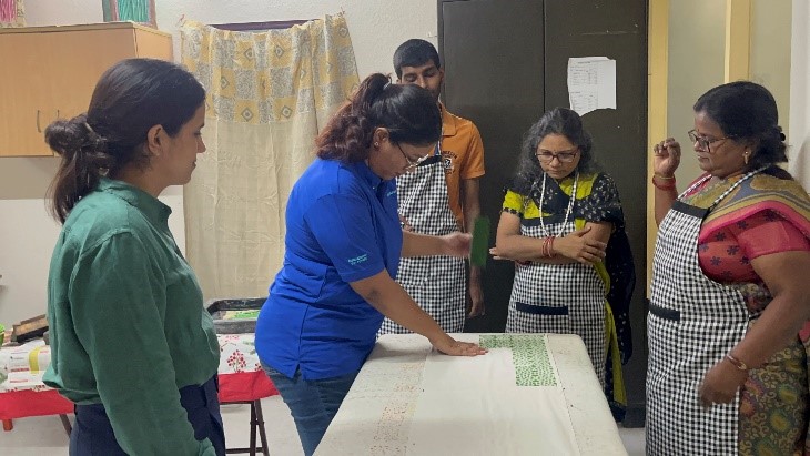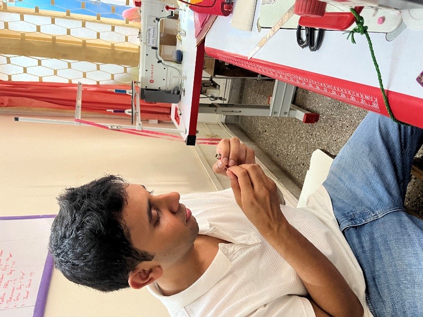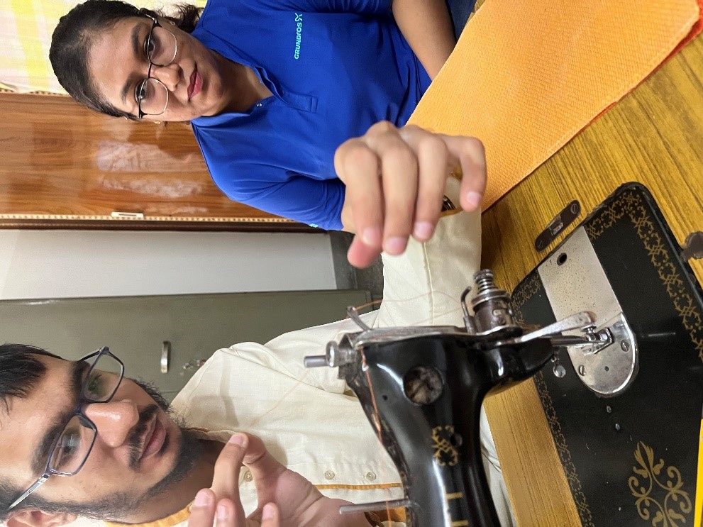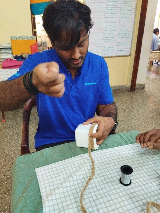 The last event of the Grundfos employee engagement was visit of their Global Graduates from top B-Schools who were assigned to our NGO in volunteering and engagement program. There were 7 Graduates along with Ms. Apoorva, CSR Consultant. They were introduced to all the trainees and then were split into groups to engage in vocational activities. Trainees taught the groups bead work, quilling art, jute braiding, tailoring, block printing and scanning of documents. It was a new experience for them and they enjoyed it thoroughly. They interacted well with the trainees All of them expressed that the activities were very therapeutic and said, were difficult in implementing. They also played some therapeutic games related to eye hand coordination, bilateral function, focus and attention.