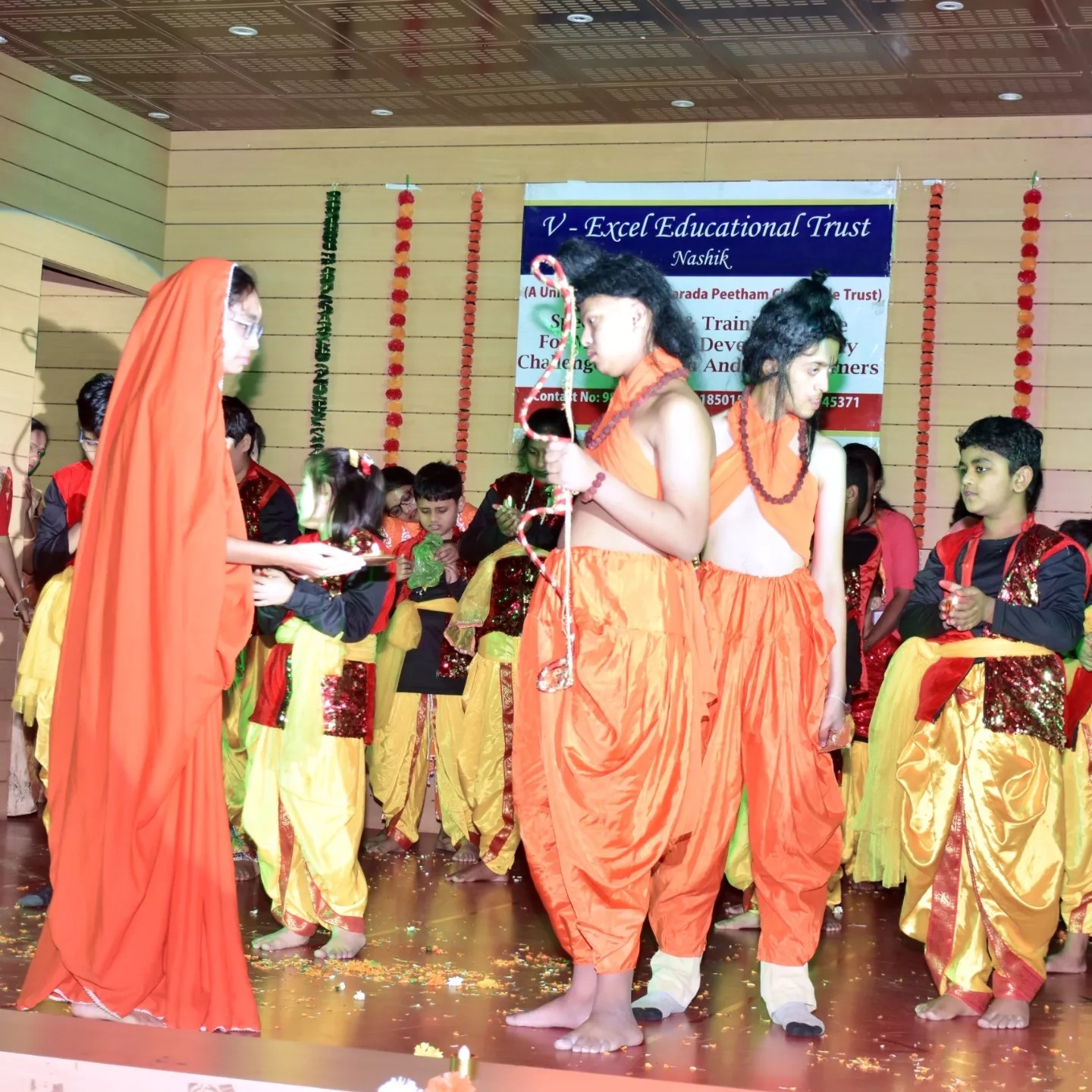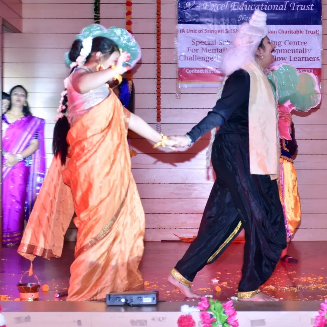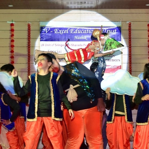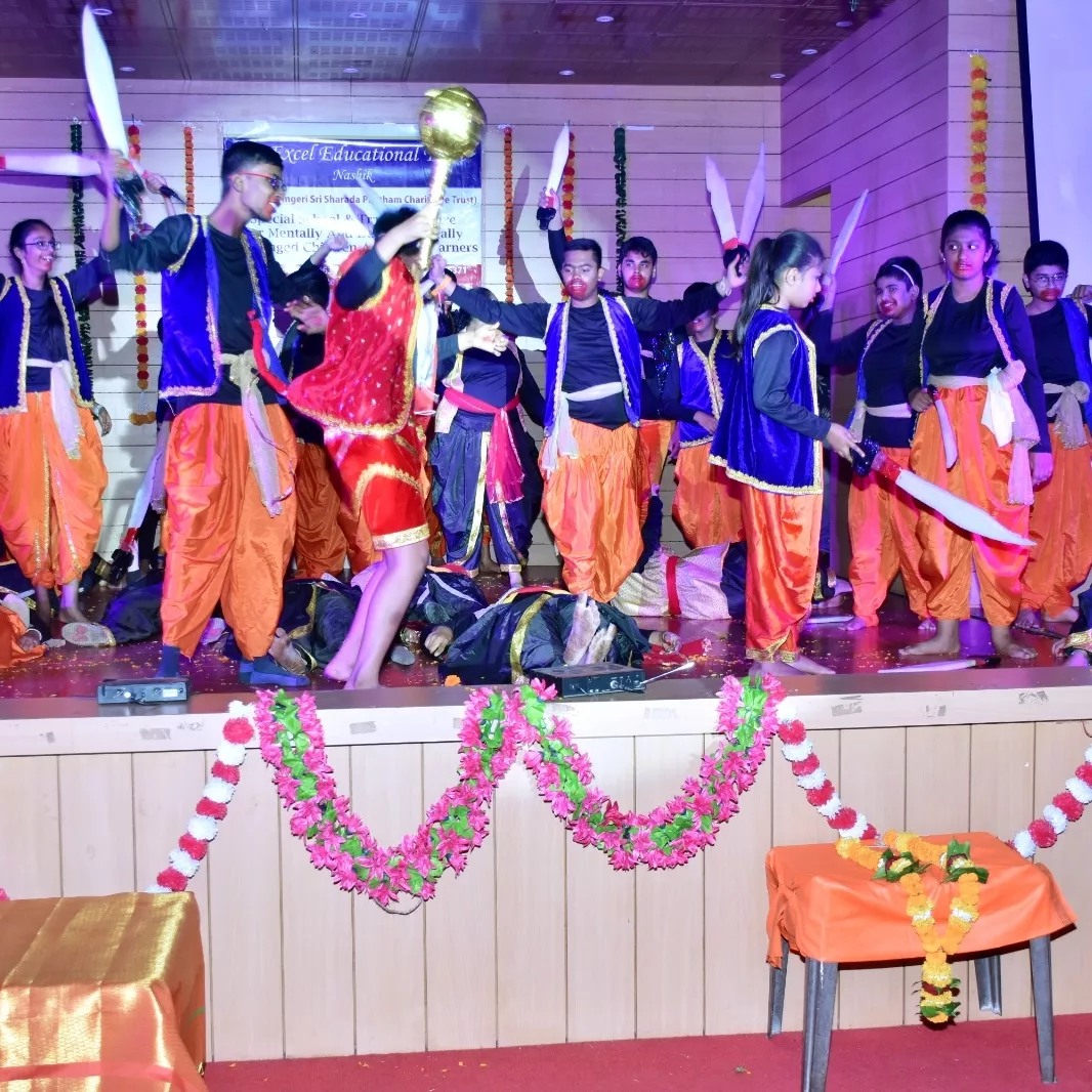 On 20th April, 2024, V-Excel, Nashik, had their 3rd Annual play. This began with the Marathi prayer 'Hich Amchi Praarthana,' followed by guest introductions and the lighting of the lamp with the inauguration of UDIT Rehabilitation foundation symbolizing a new era of hope and empowerment. The Ramleela performance by the students showcased various scenes, including the formation of the Ayodhya temple, Sita Swayamvar, 'Sita Haran' by Ravan, Hanuman Chalisa dance, and a depiction of the war between Ravan and Ram's forces.