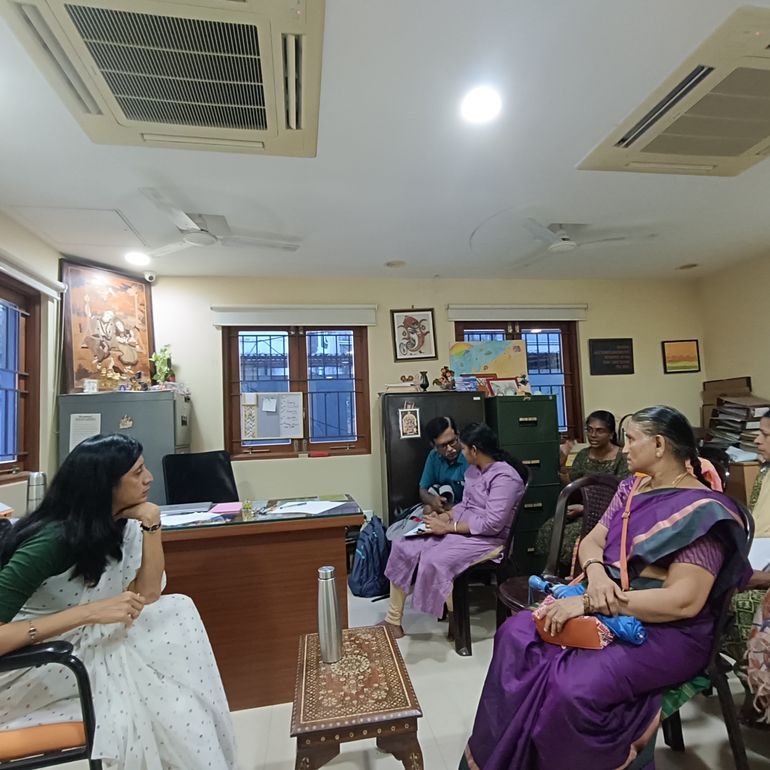 We had two guests visiting VTU from State Bank India, Branch manager and her team and Mr. Adityan, Secretary to MD from Cholayil group of companies to know about our organisation and activities.