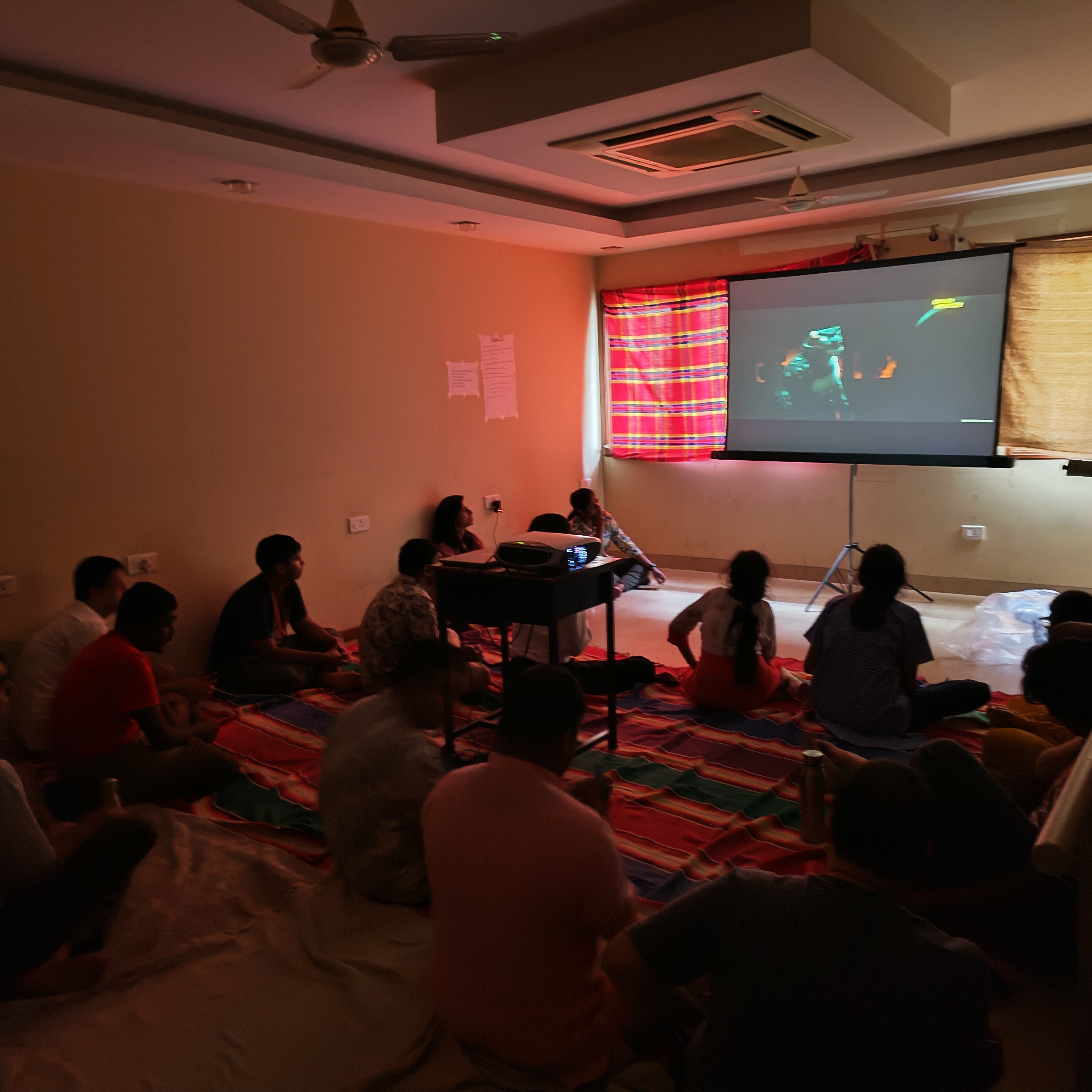 On our last working day of the academic year, 17 May 2024, lunch was organised for all the trainees and the trainers at YES. A healthy, yummy meal was ordered, and the trainees helped each other in setting up tables for lunch, serving and cleaning up the place. This was followed by watching a movie. Therapy space was converted into a theatre like set up with projector screen. Kungfu Panda 4 was the movie that was chosen, and all enjoyed the movie thoroughly. Popcorn was distributed as snacks.
