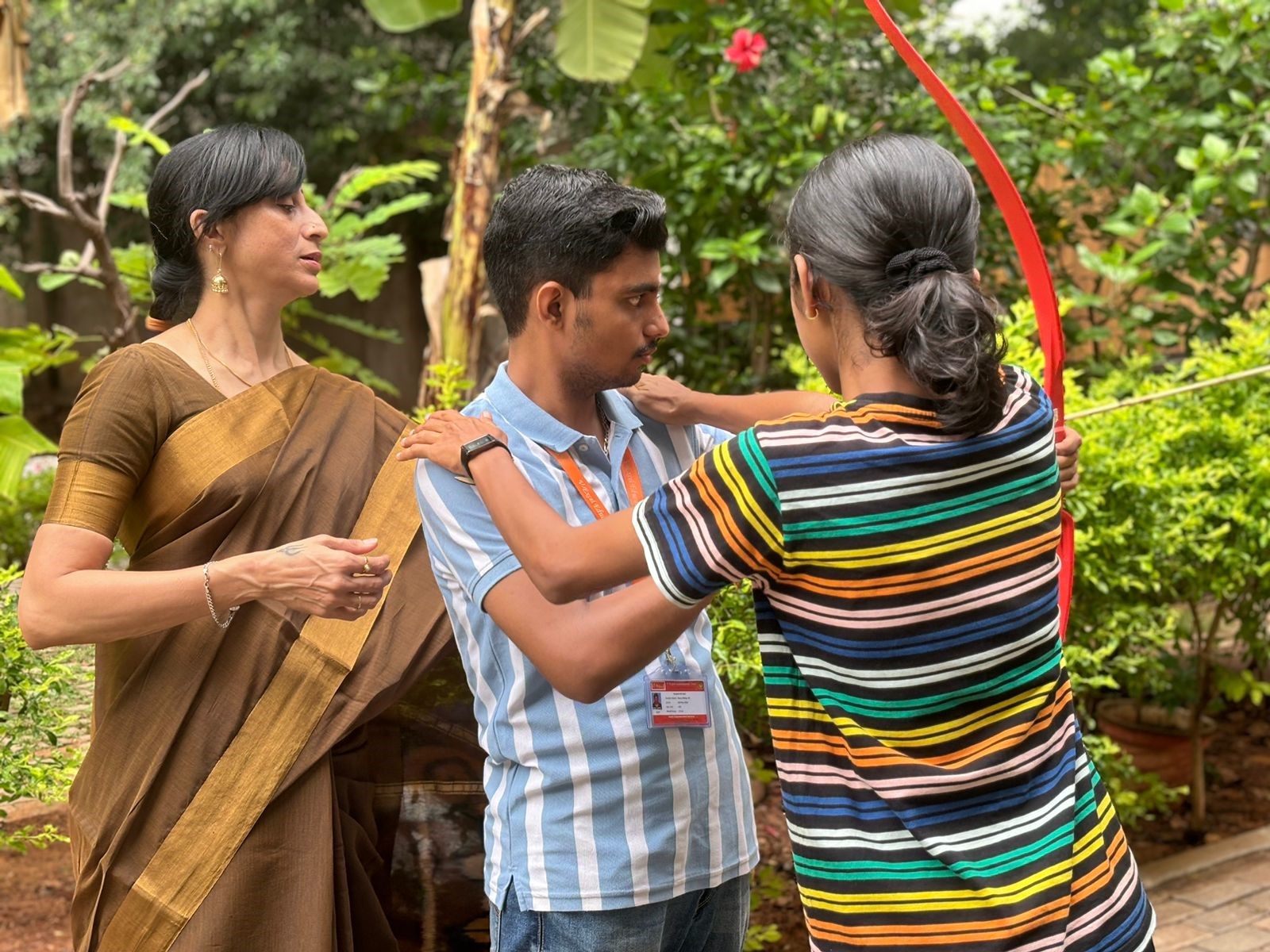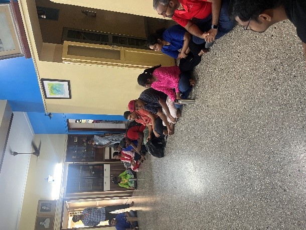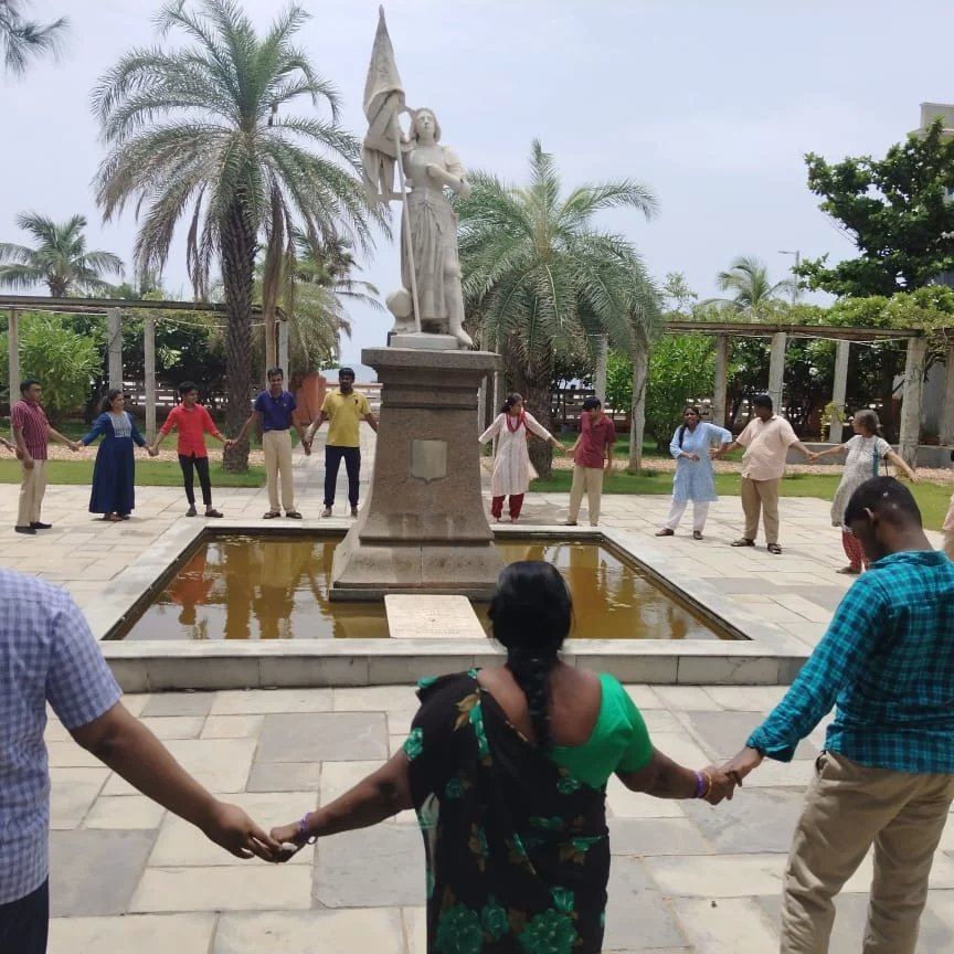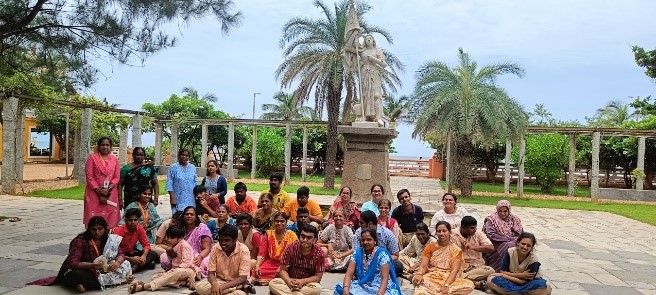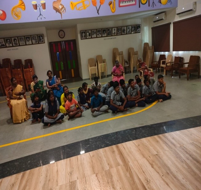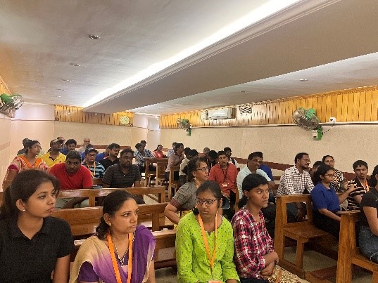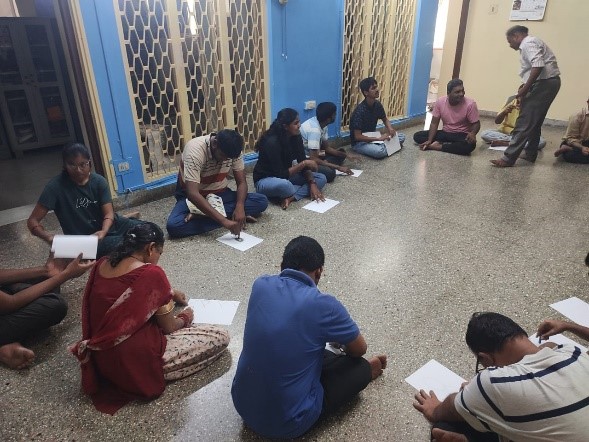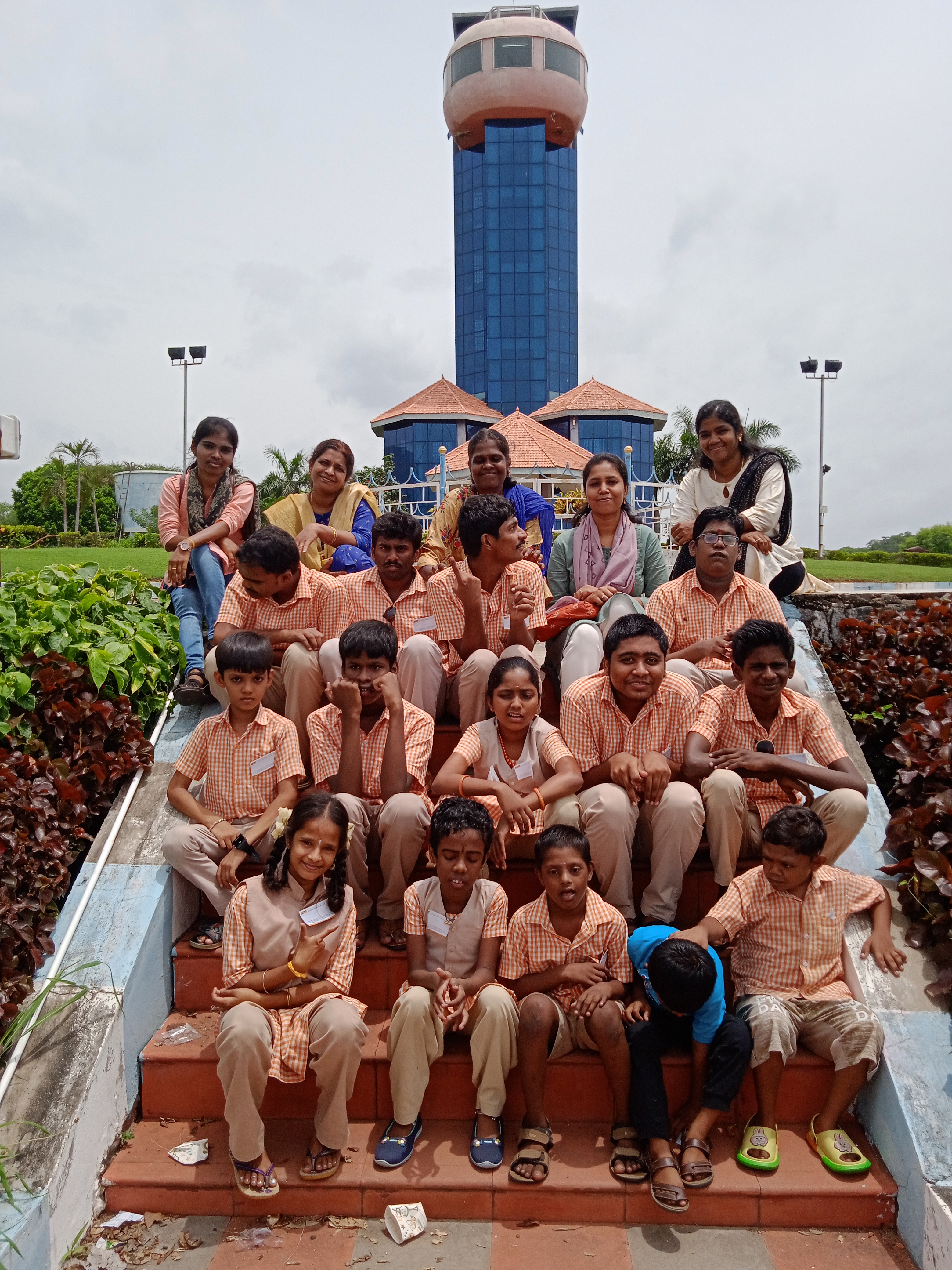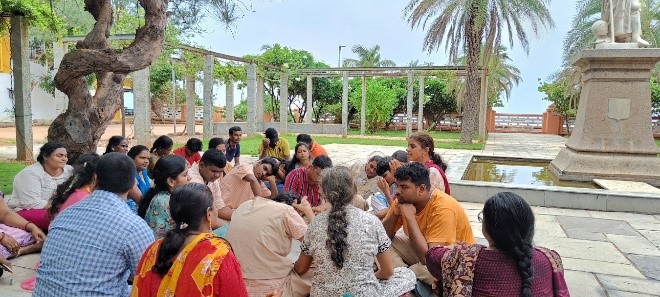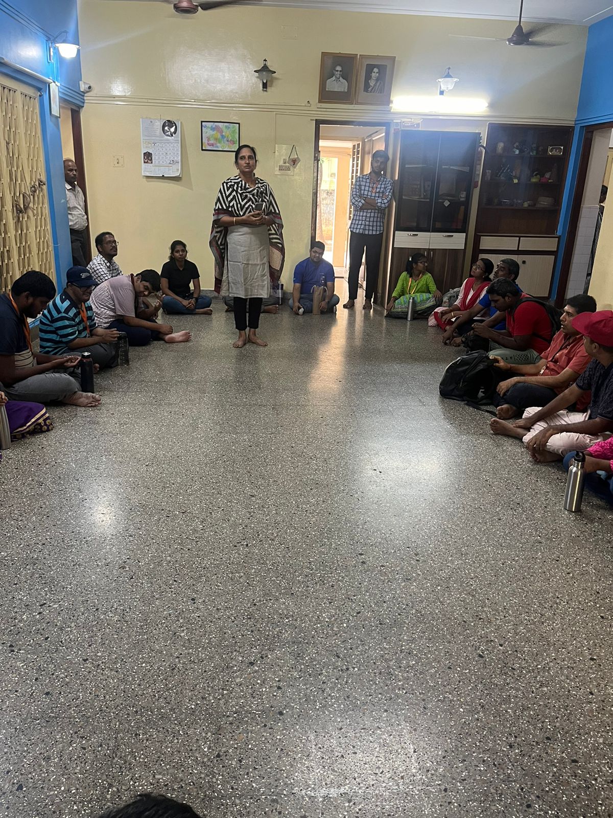This month field trip was unique and fun filled. We had 18 volunteer’s employee of our CSR Partner Grundfos Pumps Pvt. Ltd., This was an employee engagement event of their CSR activities. We had hired two vans and 11 trainees (last minute 7 trainees were on leave) along with 6 staff, travelled with the 18 staff for the field trip. Totally 40 of us were there and went to Light House first at 3.00 pm on 26th July 2024. Uma had an orientation program for the employees and trainees.