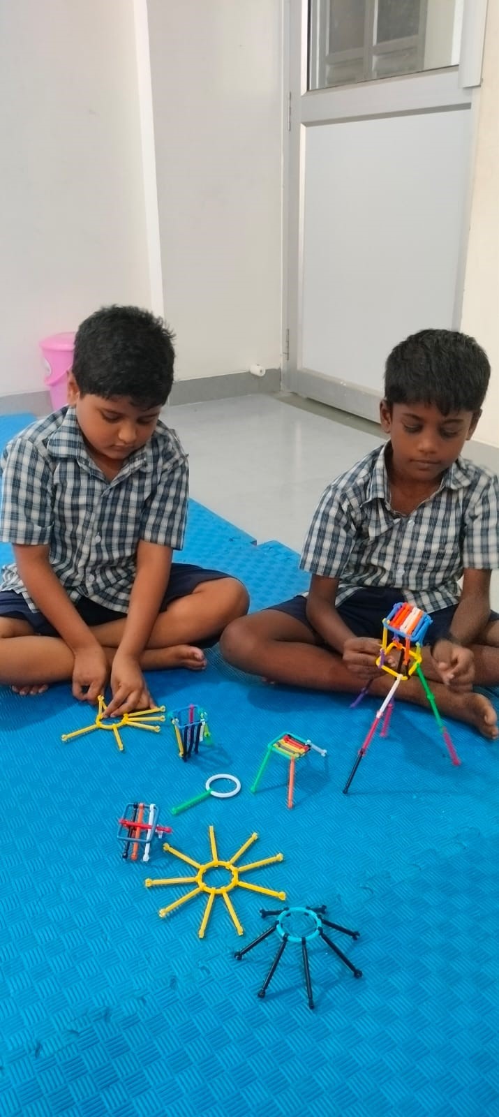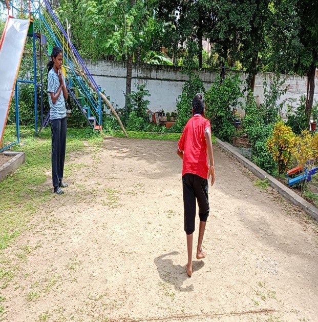 • Therapist Vasanth had sessions in a group and individually on Focus and attention, bilateral hand function, standing tolerance and follow verbal instructions. Also, for trainee Aqeeb and Sousan blowing activities for breathing exercise was given to improve their speech.