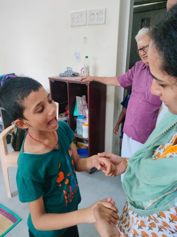 Abhijitha does not open up easily, her voice is extremely feeble even when she speaks. Her Teacher, Ms. Pinky, comes up with creative ways to get her to talk. She initiates by asking her about her day at school or what she did with her friends that day. Pinky ma'am also tells her jokes and makes funny faces to get Abhi to open up. Although Abhi responds well, she withdraws and becomes non-verbal as soon as she realizes she had spoken just then. Little by little, Pinky ma'am is getting Abhi to let go of her resistence to talk.