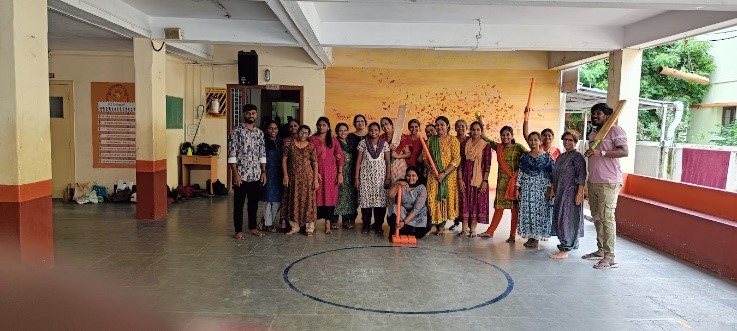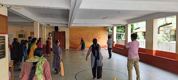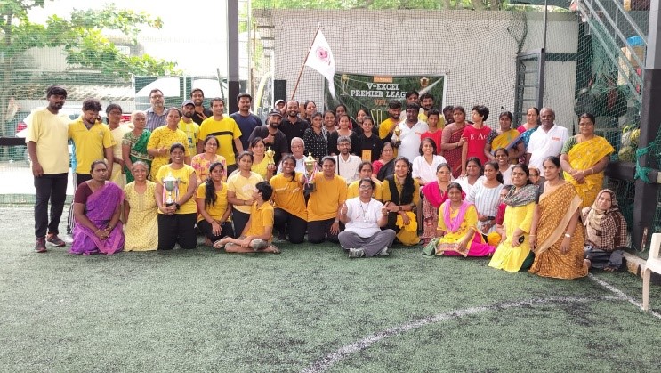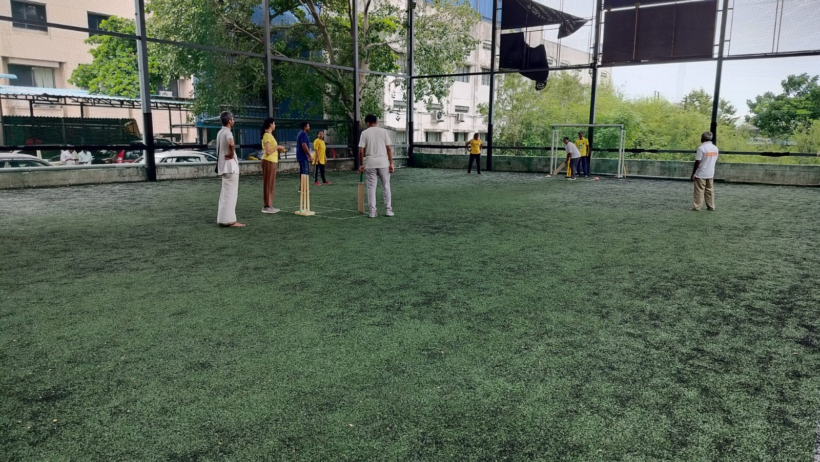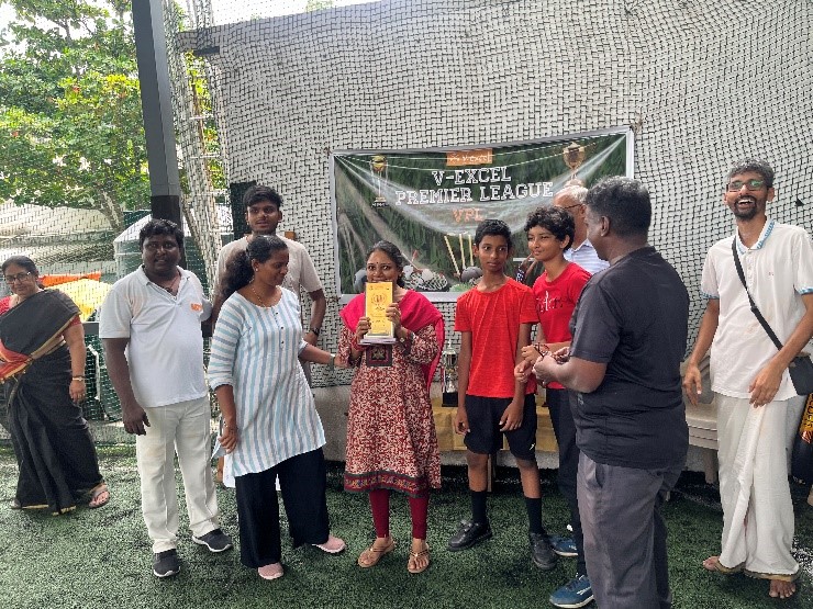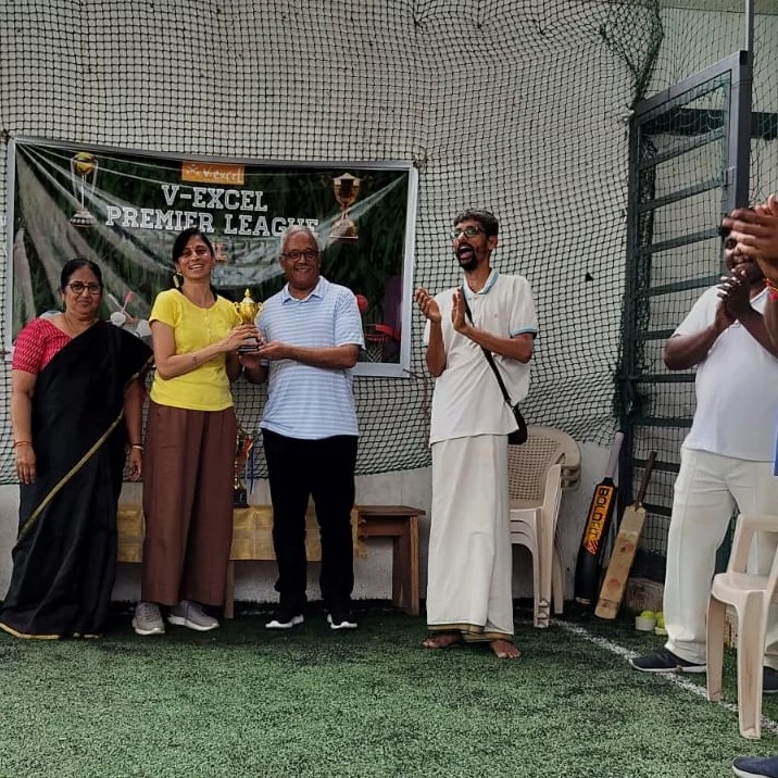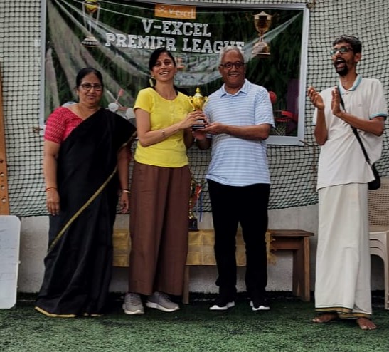 Our EI/VRC unit had organised a V-Excel Premier League for all the staff/teachers of Chennai units where they had a Cricket tournament. Every unit was asked to send a list of 8 people and they played against each Unit . It was a wonderful initiative and all the staff and teachers enjoyed playing the game. Prof. Anand was the umpire, with a unique costume of his usual attire. From VTU, all our teachers along with staff of ESVI Sarada Foundation played the game against YES team. We received participation cup and KLC won the overall tournament.