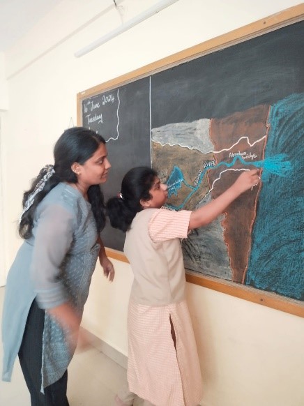 The rivers of India – Adyar River, Koovam, Cauvery, Krishna, Godavari, and Brahmaputra are some of the rivers covered in this block. Teachers presented these rivers through narration, dance, drama, koothu, movement and the students were mesmerized when it was presented. They also cooked dishes from the various regions through which these rivers run.