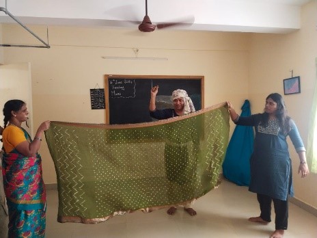 Production is happening as usual in all the vocations, based on the need and requirements. There has been regular work in laundry. This month we completed a screen-printing order for Kocoatrait.