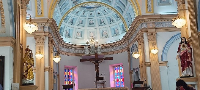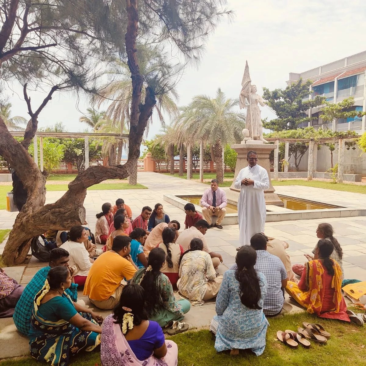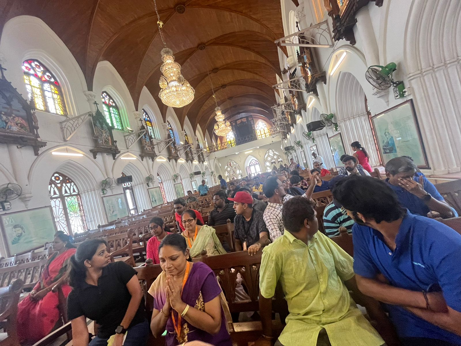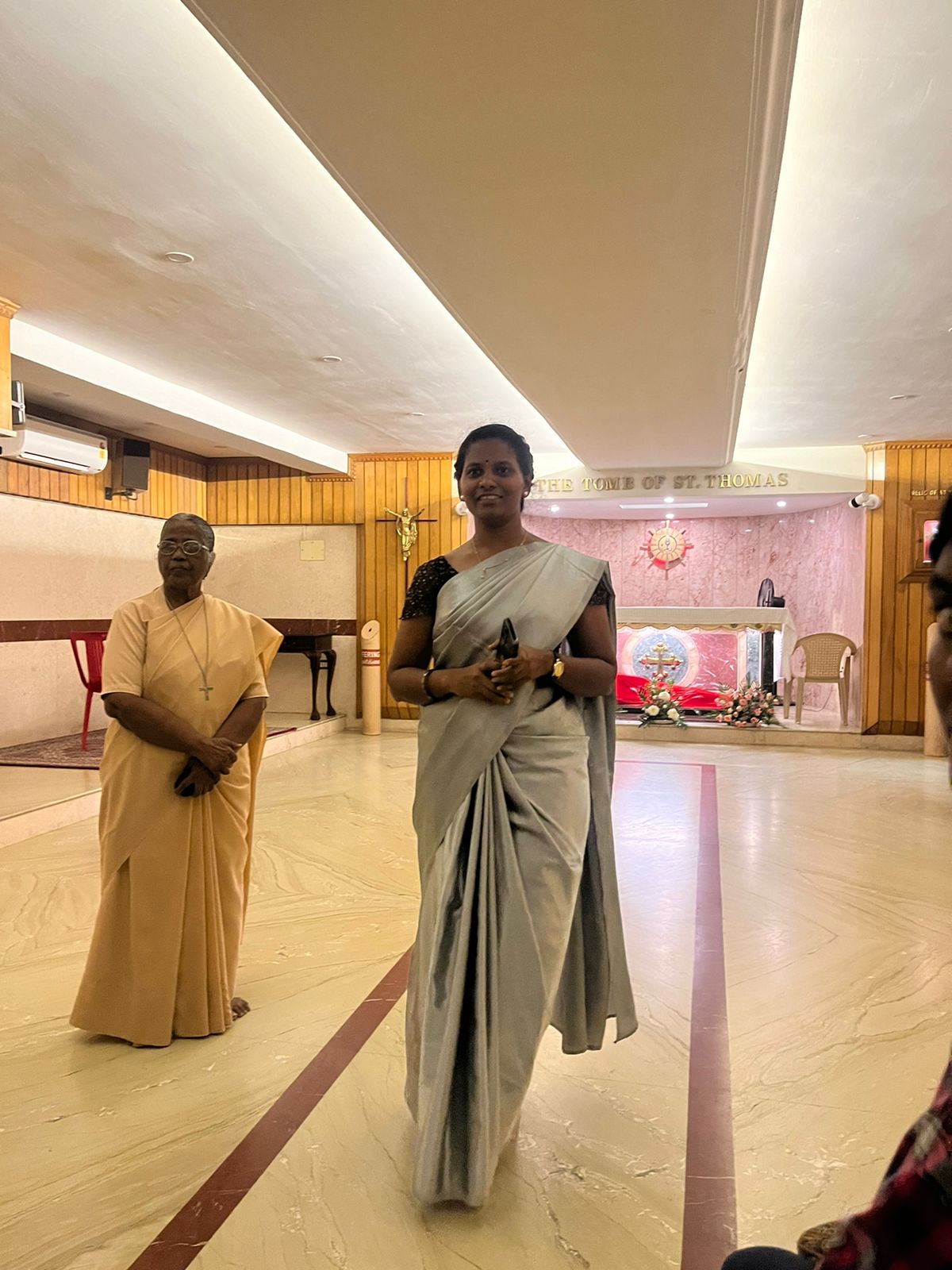 We first visited Santhome Church, and each trainee was assigned to their staff. It was overwhelming to see each one connecting and making friends and chatting with our trainees. Trainees were very happy to have new friends and during the journey from center to Church they all had a good time, dancing, singing, and chatting. We prayed in the prayer hall and were happy to see all trainees keeping calm and quiet. We visited the museum and a sister explained the story of St. Thomas and how the church was built.