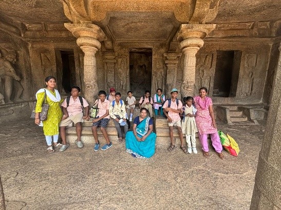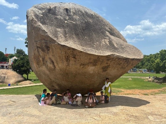 Grade 1 and 3 students in relation to their main lessons visited Mahabalipuram with their teachers, learnt about the carvings and structures, had lunch there and returned to school. They travel together, manage the heat of the day, are in a group out in the open and listening to the explanations about what they see, are experiences which are new, and help them to get accustomed to the world outside their familiar zone.