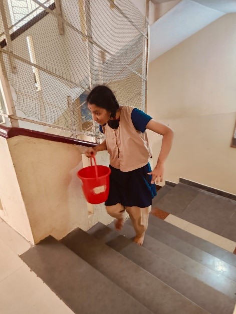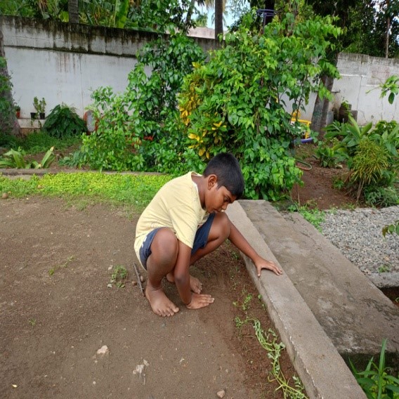 Transitioning from one activity to another is very difficult for some of our students. It takes them a lot of time and effort to do this. Hamsini, one of our students who has this difficulty, is learning to let go of her rigidity and transition smoothly from her gardening vocation to the next activity, by helping to carry the gardening equipment back to storage. This is a big step for her.