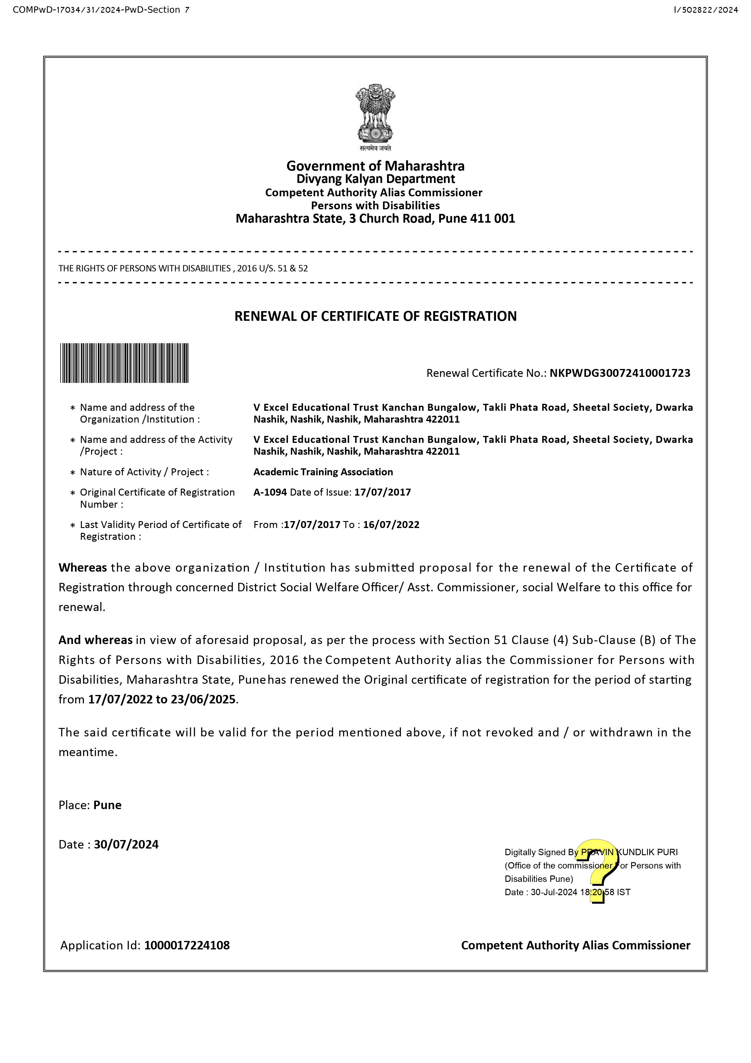 Celebration of the First anniversary of V-Excel Educational Trust, Pandharpur was held on 9.7.2024.