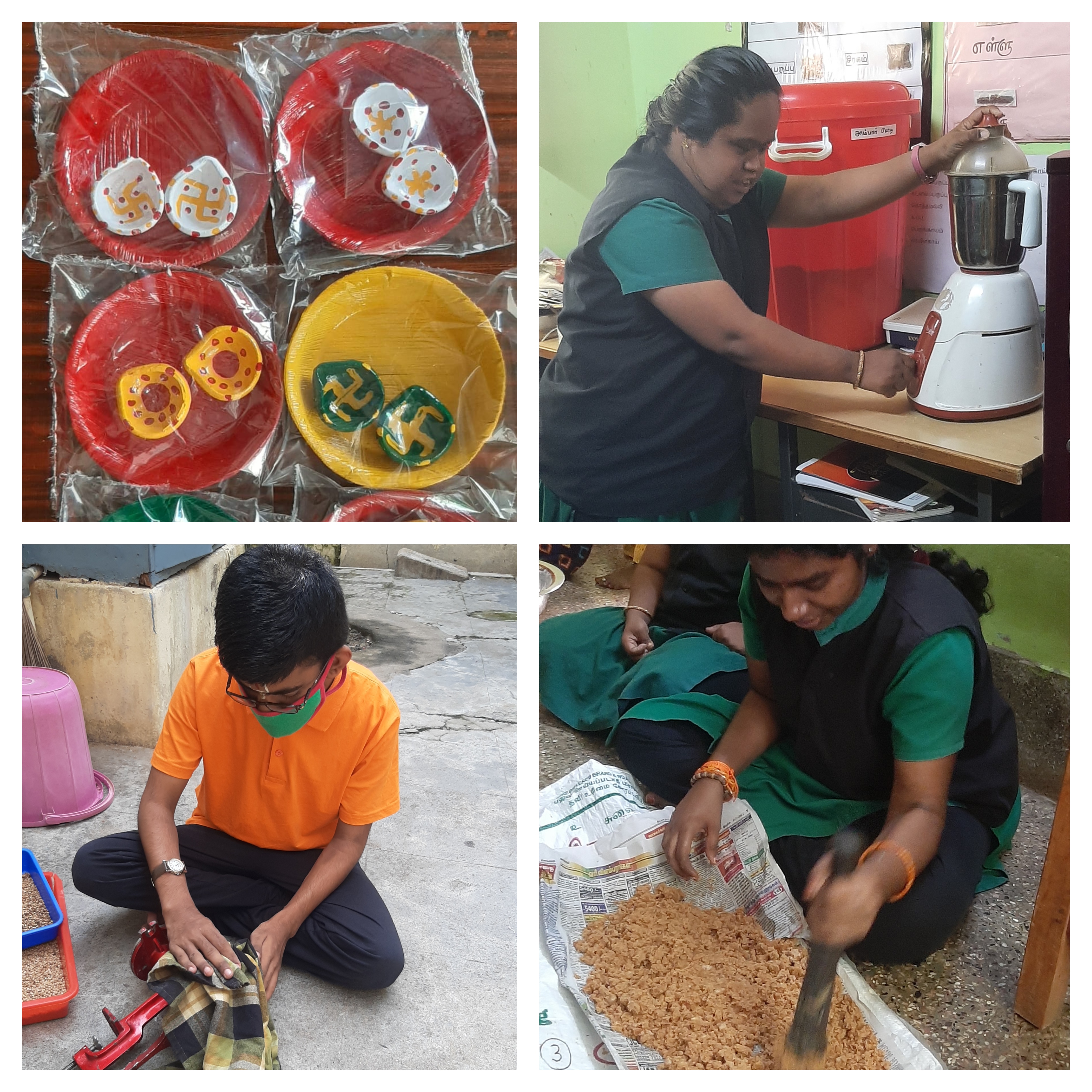 • Our Finance Head Prof. Anand VTU accompanied with a Swamiji Prabhakar, Founder of Guru Kripa Center for special Needs, Madurai visited our unit. He was happy to see all our activities and is planning to start a vocational training program as there are more young adults coming in.
