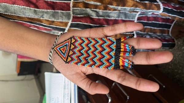 • Trainees Soushan completed the mobile pouch bead patch work independently and she was very happy about her work.