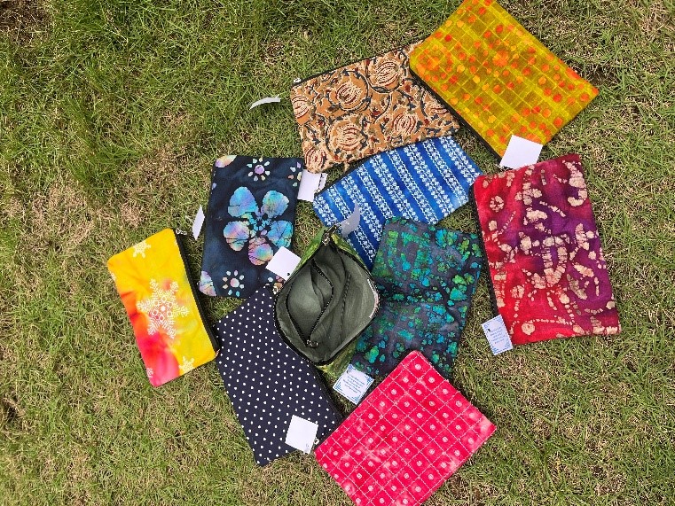 We had received order for 10 fabric pouches and the team was busy cutting the materials and stitching.