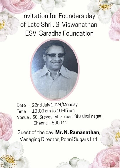 Founder’s Day of Late Shri. S. Viswanathan of ESVI Sarada Foundation was organised by VTU team. Usha and Rajagopal (Trustees of ESF) came on video call from Australia. Mr. N. Ramanathan, MD, Ponni Sugars Ltd., was invited as Guest to share his experience working with the Founder Shri. SV. It was great to know about this visionary and how he has given importance to pick talented team and first one to work on CSR activities 50 yrs back. Though he was a business man but always felt that it should be for a cause and uplift the labour and empower and give them dignity of life. He had helped his staff and family and still doing so by giving the VTU premises for running the unit for special needs. His family is still holding his torch with ESVI Sarada Foundation.