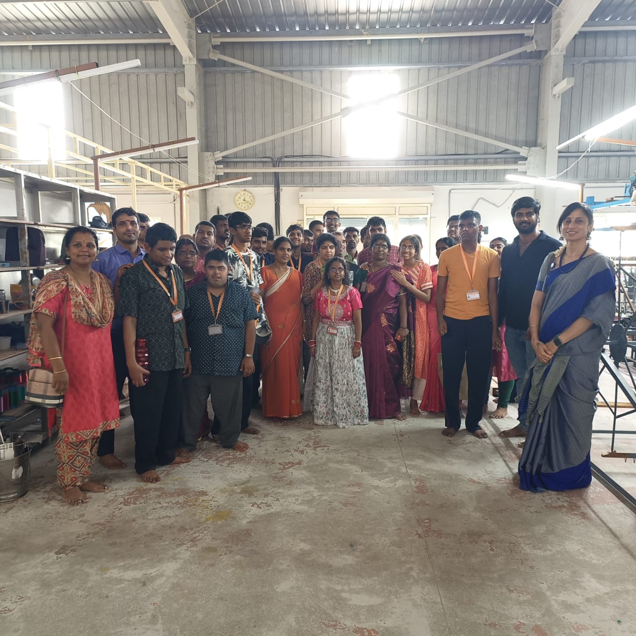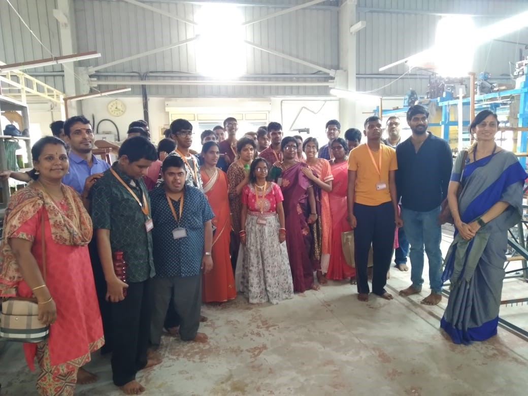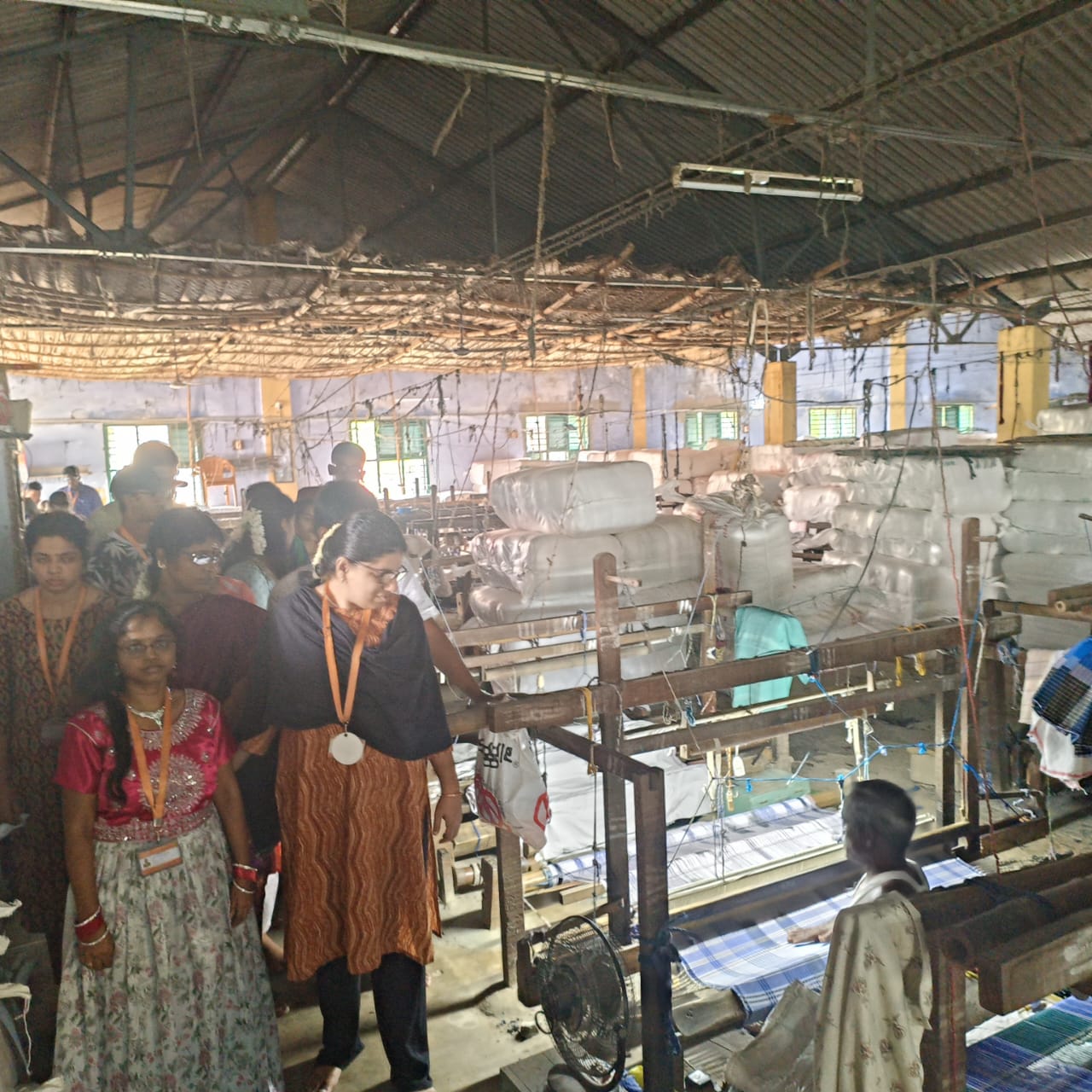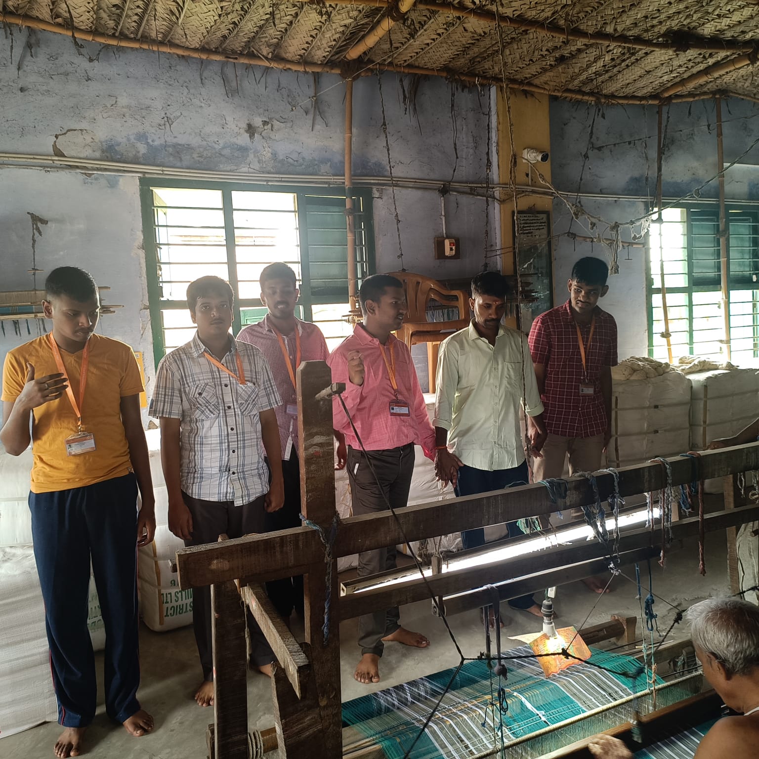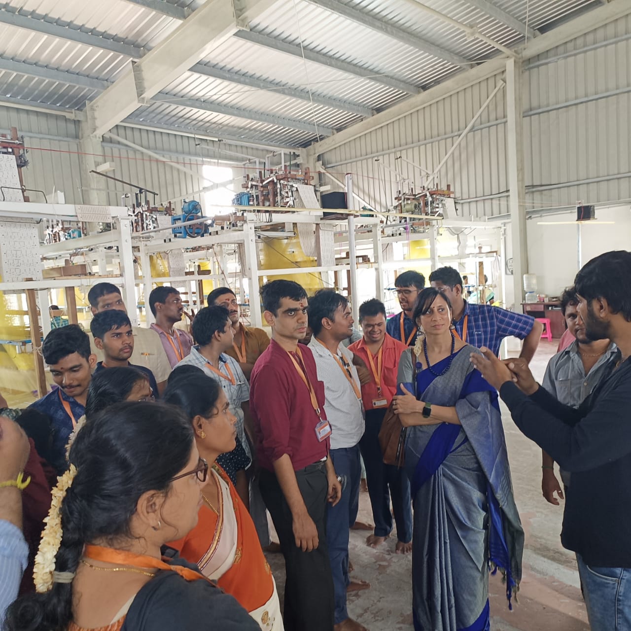 We then went to the Silk Park in Kanchipuram where we visited the mechanized loom facilities of Shree Ramkumar Silks. The proprietor, Mr. Rajendran, interacted with our trainees and his team explained the process of weaving, designing, and packing silk sarees.