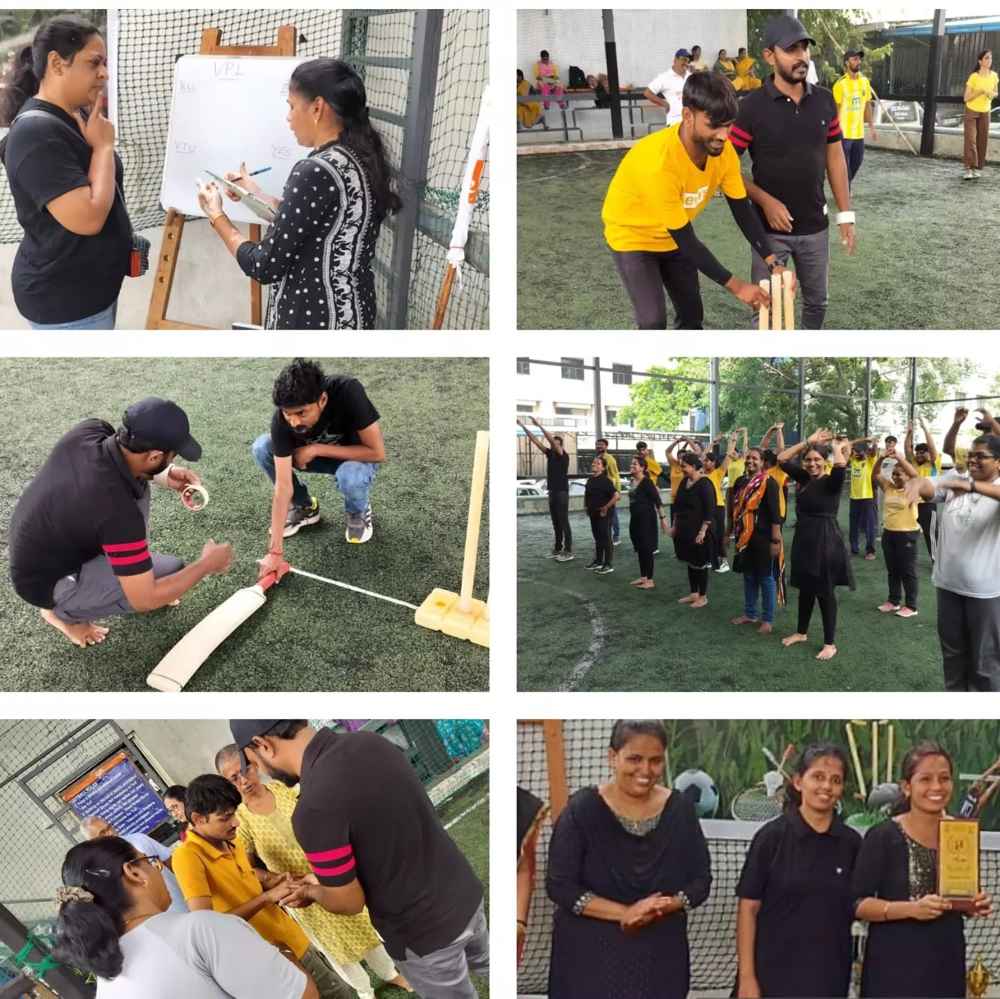 As part of the sports meet (Sangam 2024) conducted by the Early Intervention and Remedial Unit, a cricket tournament – V-Excel Premier League (VPL), was conducted on the 27th of July 2024, at SMASHER 3.0, for the staff of the various units of V-Excel. The participants were separated into four teams (Blue, Yellow, White, and Black), each consisting of eight members. A total of three, 8-over matches took place between the competing teams in the form of an elimination bracket.