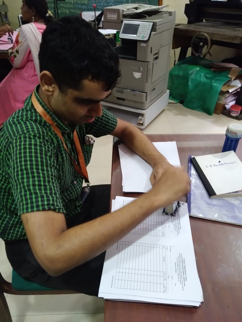 • Gururajan a hearing-impaired youngster joined VTU as staff in the tailoring unit. He will be on training for a month and then based on his performance will recruit him as a production unit staff.