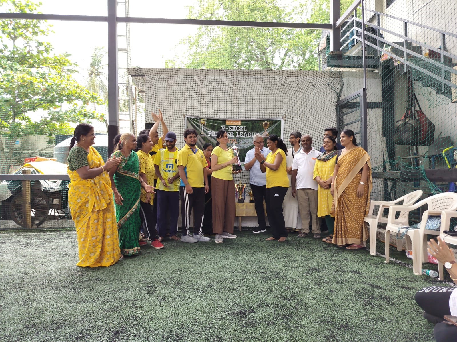 When any event is organised with so many good hearts and as Team V-Excel (though today we were divided into teams- blue, yellow, black and white), the Almighty also pitches in. The daily scorching weather of Chennai turned into an over cast and the energetic game of cricket was played with enthusiasm and spirit. No Sun, but YELLOW was still the color of the day. Congratulations to the winners, Team Yellow.