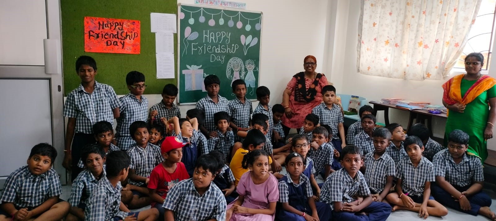Friendship day celebrated with our students. Students made colourful friendship bands and then tied to teachers and all their brothers and sisters.