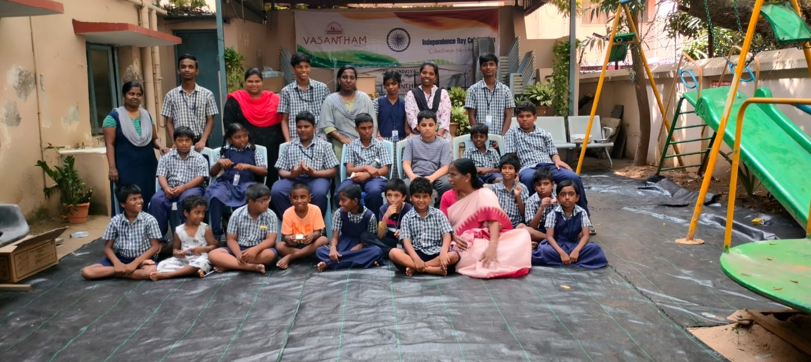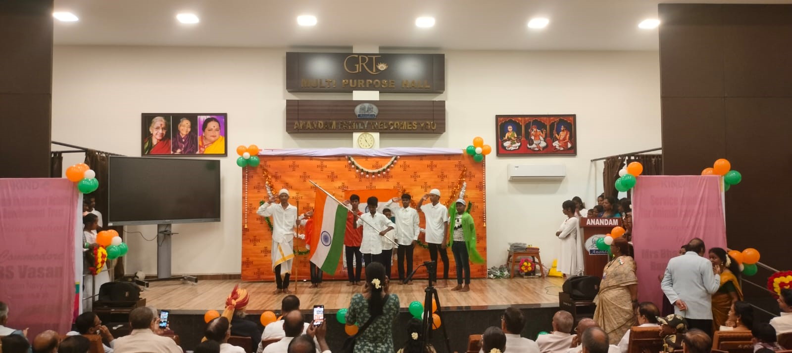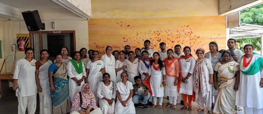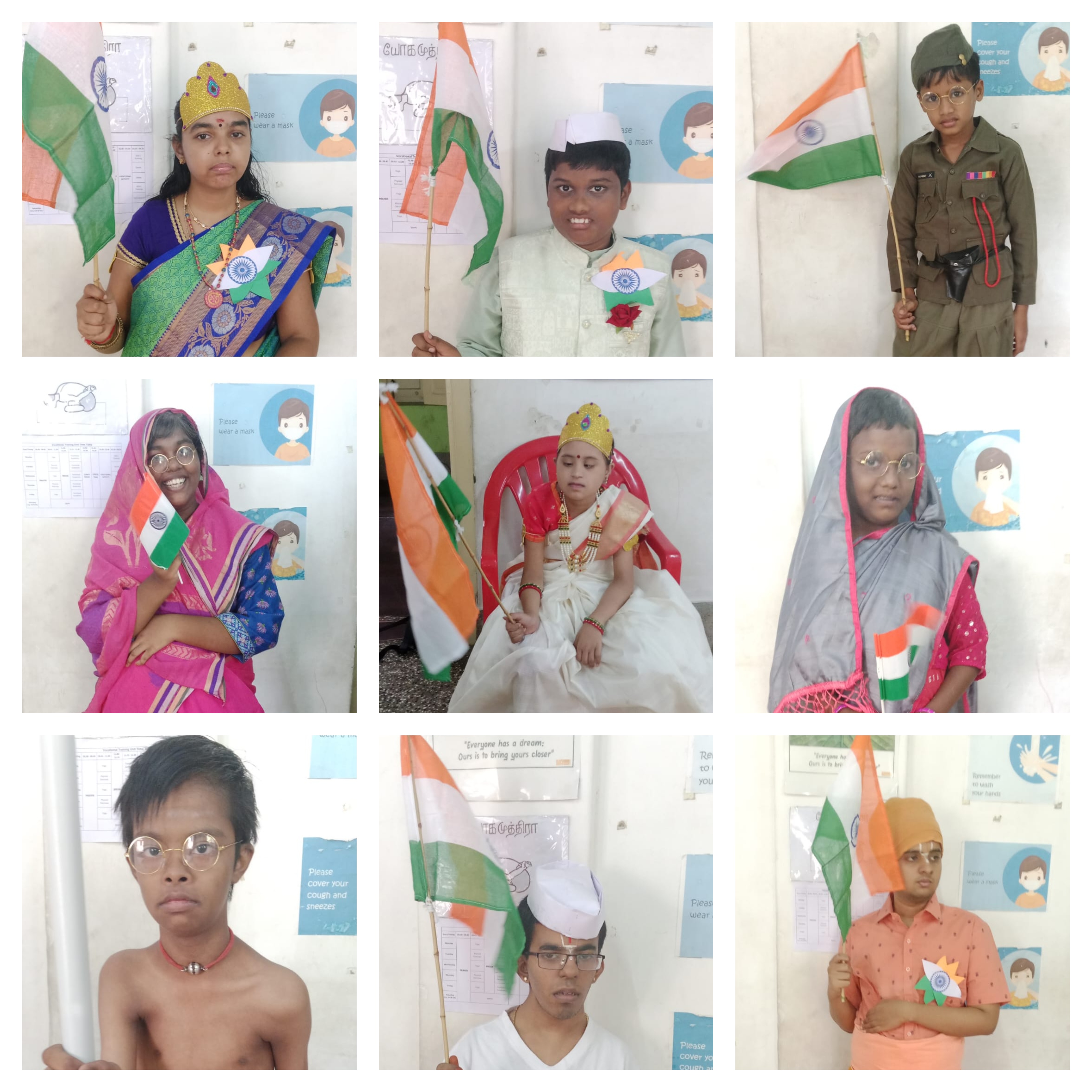 @KLC Prasad, Preethi, Neha(teacher) and Ms. Gita Bhalla (Principal KLC) scripted the performance. They believe that the thoughts and spirits of the children soar high like free birds. The children's body and constitution may pose challenges, but their spirit have glimpses of freedom in different expressions. The various performances and patriotic songs moved everyone in Sharada, and all sang together with love and respect for INDIA.