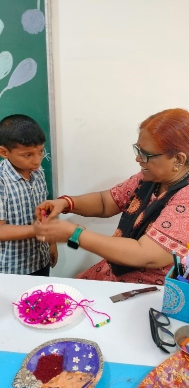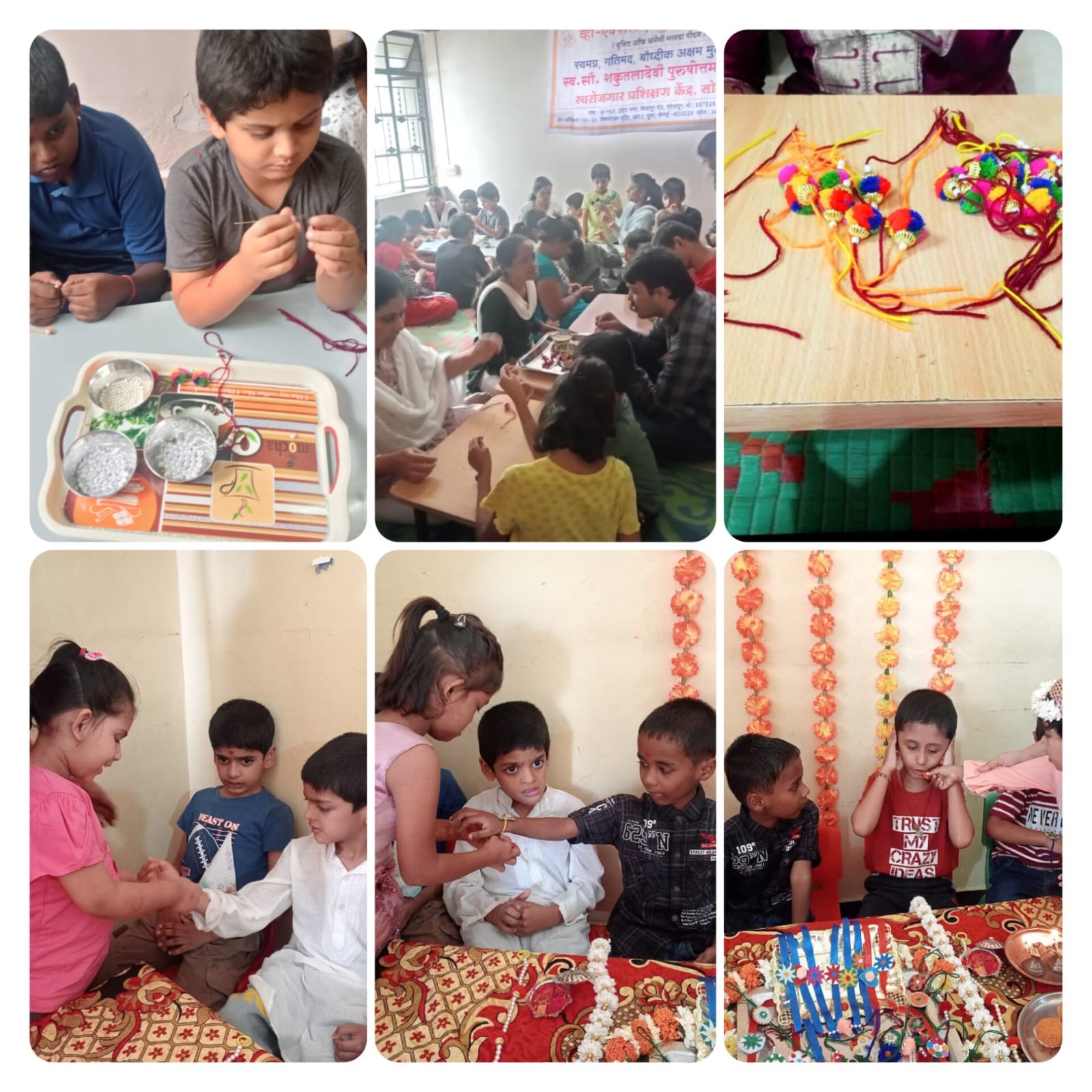 At V-Excel Pandharpur center, children celebrated Rakshabandhan by making beautiful Rakhis with the help of teachers and tied them to the boys of the center. When children took interest and participated in Rakhi making activity, teachers made more Rakhi and sold them to the Inner Wheel club members.