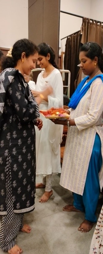 Sisters and brothers from the Brahma kumaris samaj visited and tied Rakhi to all the staff and students.