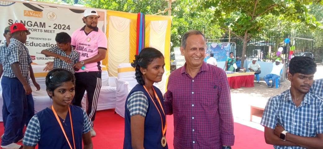 Students participated in the "Sangam 24" sports event meet at St. Bedels School organised by V-Excel Educational Trust.