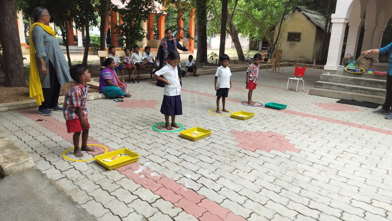 As part of Sangam 2024, a total of 22 games were ideated for children, in different age categories. Videos of how the games were to be played / conducted and instructions regarding the same were shared with the various participating institutions - (Government schools who are supported by our outreach programme – Olcott Memorial School, Catherdral Free Primary School, and Chennai Primary School, Kallikuppam), from the various units of V-Excel (EI-VRC, KLC, YES, and VTU), and from other NGOs (Aram, Anandam, and Jayam [Padi and Ayapakkam]). A list of potential participants who could take part in the game was requested. On identification of the participants by the respective institutions, the games were conducted for them in their premises.