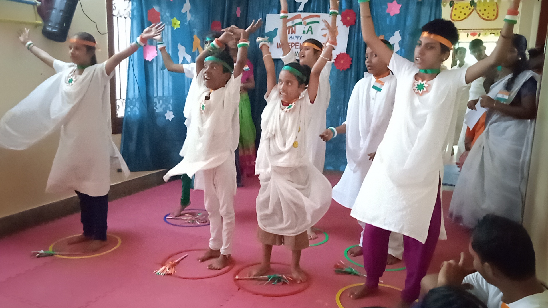 @KLC Prasad, Preethi, Neha(teacher) and Ms.Gita Bhalla (Principal KLC) scripted the performance. They believe that the thoughts and spirits of the children soar high like free birds.The children's body and constitution may pose challenges but their spirit have glimpses of freedom in different expressions. The various performances and patriotic songs moved everyone in Sharada and all sang together with love and respect for INDIA.