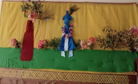 Krishna – the eternal friend of our students who brings out joy, naughtiness, caring, and fun filled days arrived in KLC from 19th to 26th August. The classrooms took the form of Krishna’s eventful life – a bedroom for baby Krishna, the throne room, the chariot that he drove, the temple of Guruvayoor, Kaliya Narthanam in the lake, the room where he danced, the place where he was weighed on a Thulabharam with a thulasi leaf and on and on. All these came about with the help of the students and the teacher's untiring work and brought Joy, happiness and fun to the children who experienced it.