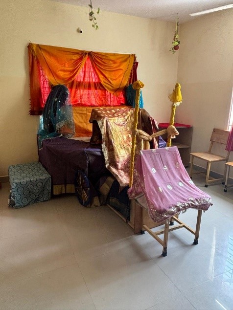 Meenakshi learnt to sequence the bead, and she was made to create a neck piece.