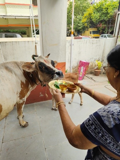A community lunch, the tradition of the cow and calf visiting the school foyer much to the delight of the children, puri Adi (pot breaking), singing Krishna bhajans and songs were interspersed through the week along with the colour coordinated clothes of yellow, green, blue the favourites of Krishna.
