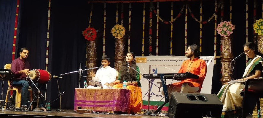 The theme of the event was Freedom in Music, performed by Ahana Balaji & R.P. Krishaang (students of Smt. Abinaya Shenbagaraj) - Vocals, Anish Mohan - Keyboard, Visswesh Vichu - percussion.