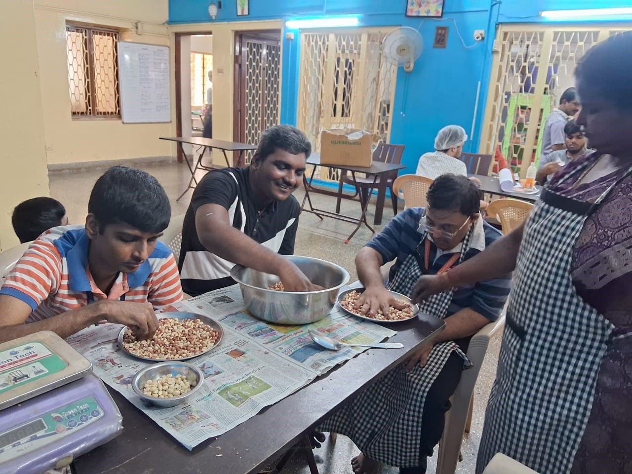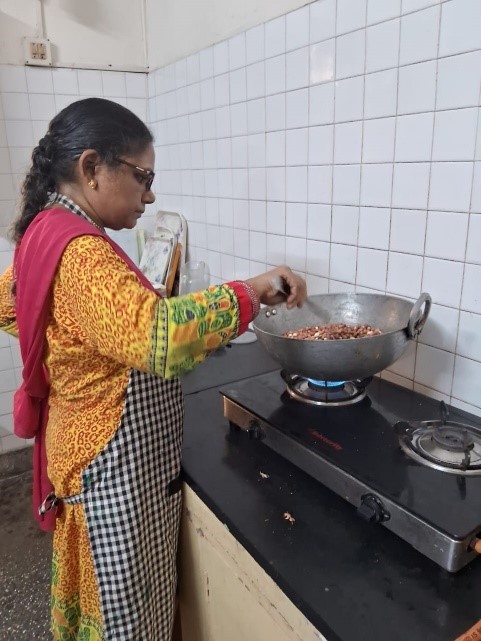 Kitchen Activities: Trainees prepared groundnut balls for distribution on Independence Day. They were involved in all the process.
