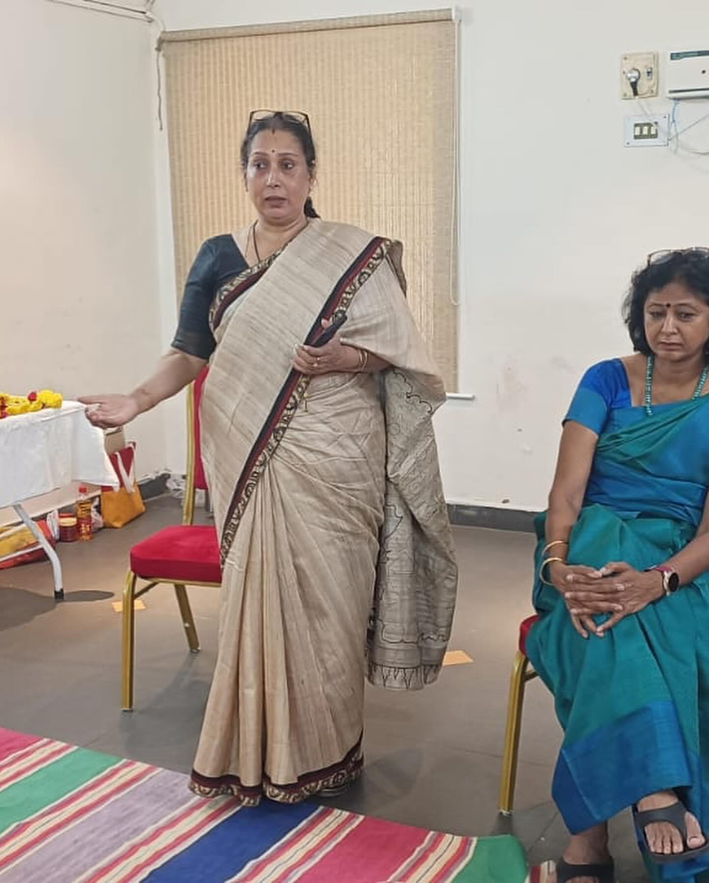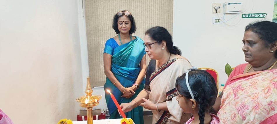 The event took place at The Mylapore Club, Mylapore, with 30 parents. After invocation and lighting of the traditional lamp, Ms. Charumathi Sriram, Coordinator of the Vocational Training Unit (VTU), welcomed the gathering and spoke about the importance of such support groups. This was followed by inspiring speeches by Dr. Vasudha Prakash, Founder-Director, V-Excel Educational Trust, and the guest speaker, Ms. Radha Ramesh, Proprietor - Twin Twigs.