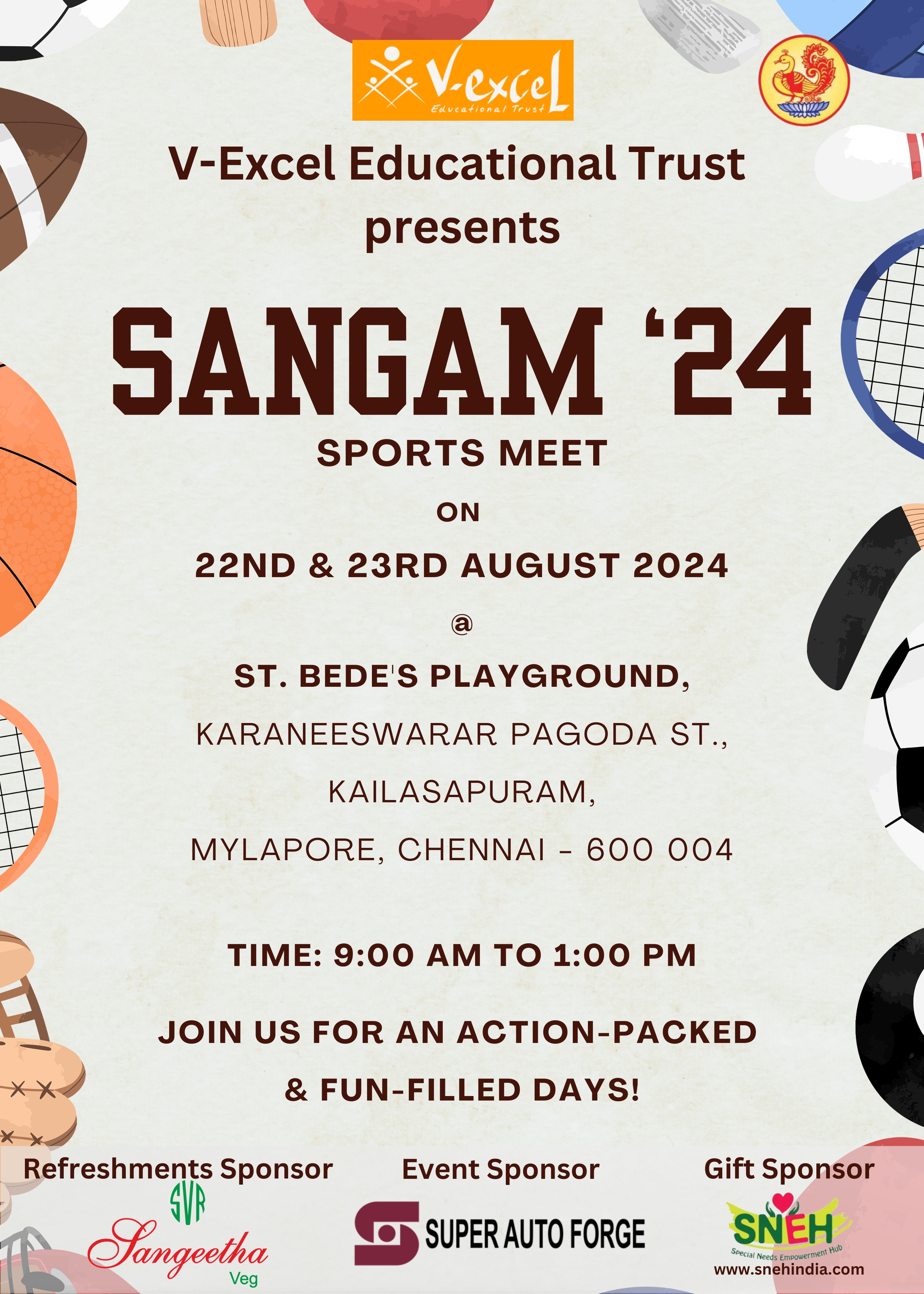 V-Excel Sports Event – SANGAM 2024 on 22nd & 23rd Sug 2024 at St. Bede’s Ground