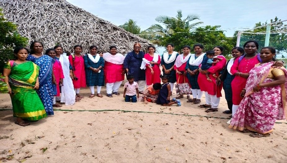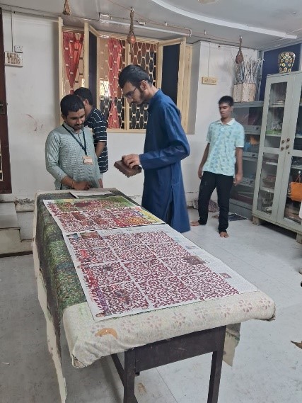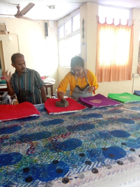 Trainees Meenakshi and Sousan were making sequences and mobile pouch bead strips respectively along with trainer Jayanthi.