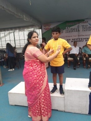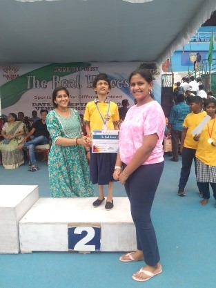 Real Heros Sports event held at Nehru Stadium was organised by Karma Yogi Trust. 40 students participated and won medals.