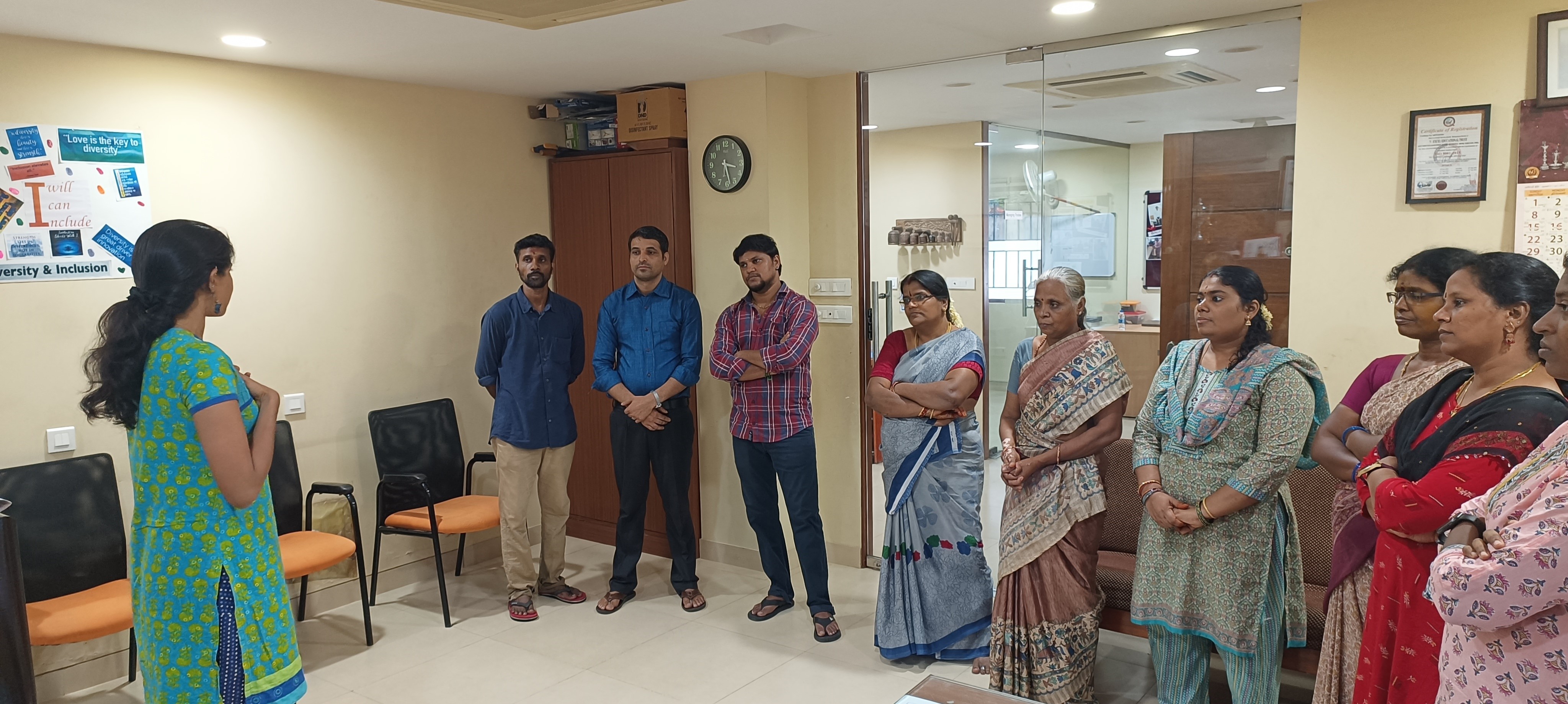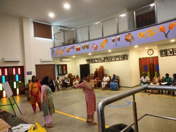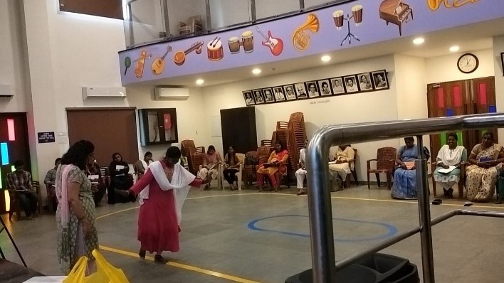 To reintroduce DMT (Dance Movement Therapy) at YES, we had a demo session by Ms. Dheepthi. Dheepthi is a classical dancer specialized in DMT. She is conducting DMT sessions in various places including Banyan. To understand the process and the importance of DMT for our trainees, Dheepthi was requested to conduct a session for all the trainers on 26 September. Trainers cleared all their doubts regarding DMT and we also discussed how to go about the sessions for our trainees. It was finally decided to start the DMT sessions at YES after Navratri.