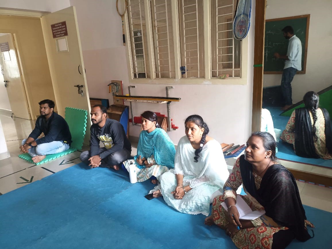 A variety of exercises were demonstrated (both video and hands-on) and the instructions to carry out the same for the child was shared. Ten educators from the Early Intervention and Remedial Unit participated in the workshop.