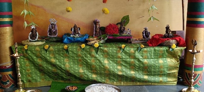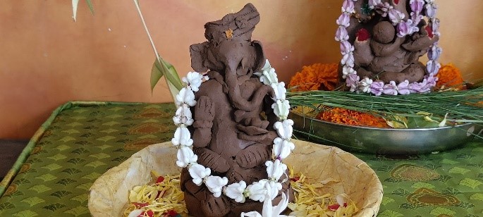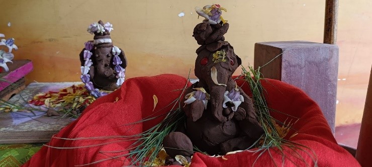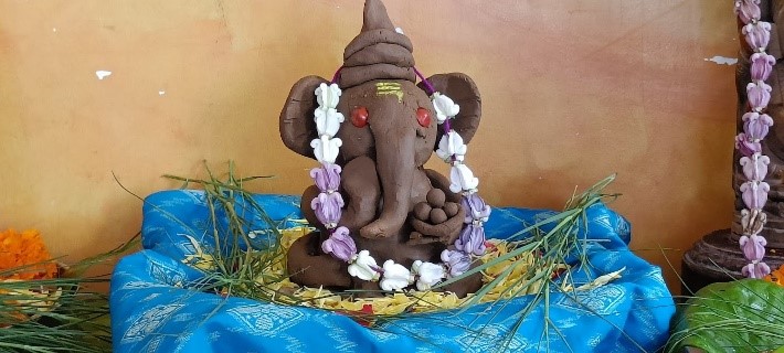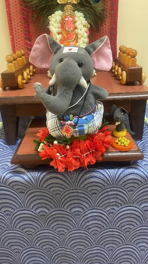 Noting Ganesh Chaturthi, an altar was set with an idol of Ganesha, alongside a figurine made using a hand puppet that was decorated like Ganesha. A small puja was performed to express our gratitude and to receive the lord's blessings.