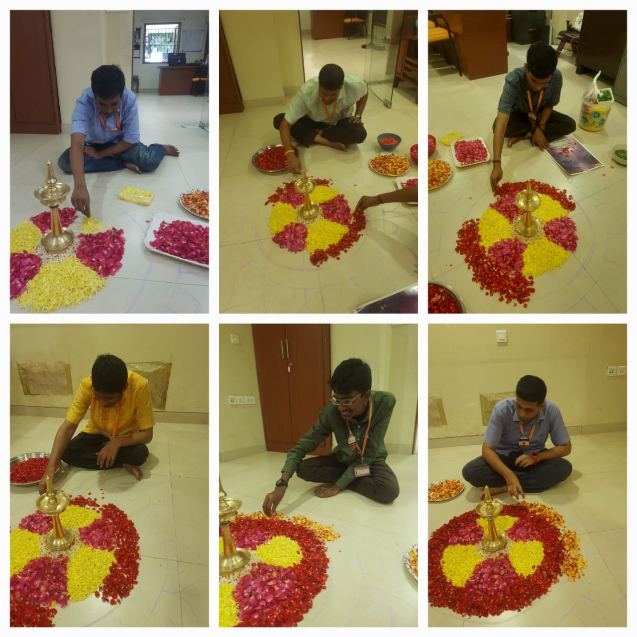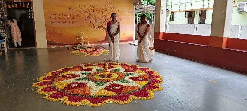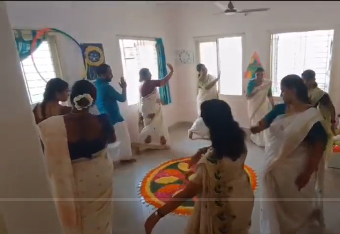 Noting Onam, a pookalam was made followed by a small dance by the staff.
