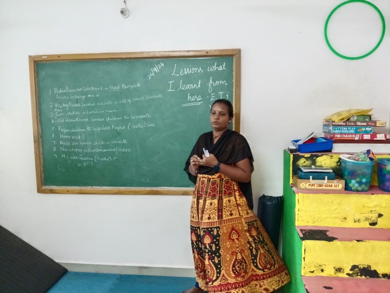 * Two new volunteers Ms. Jaya Menon and Valli joined us. They will work with our group for 4 days in a week in the afternoon session.