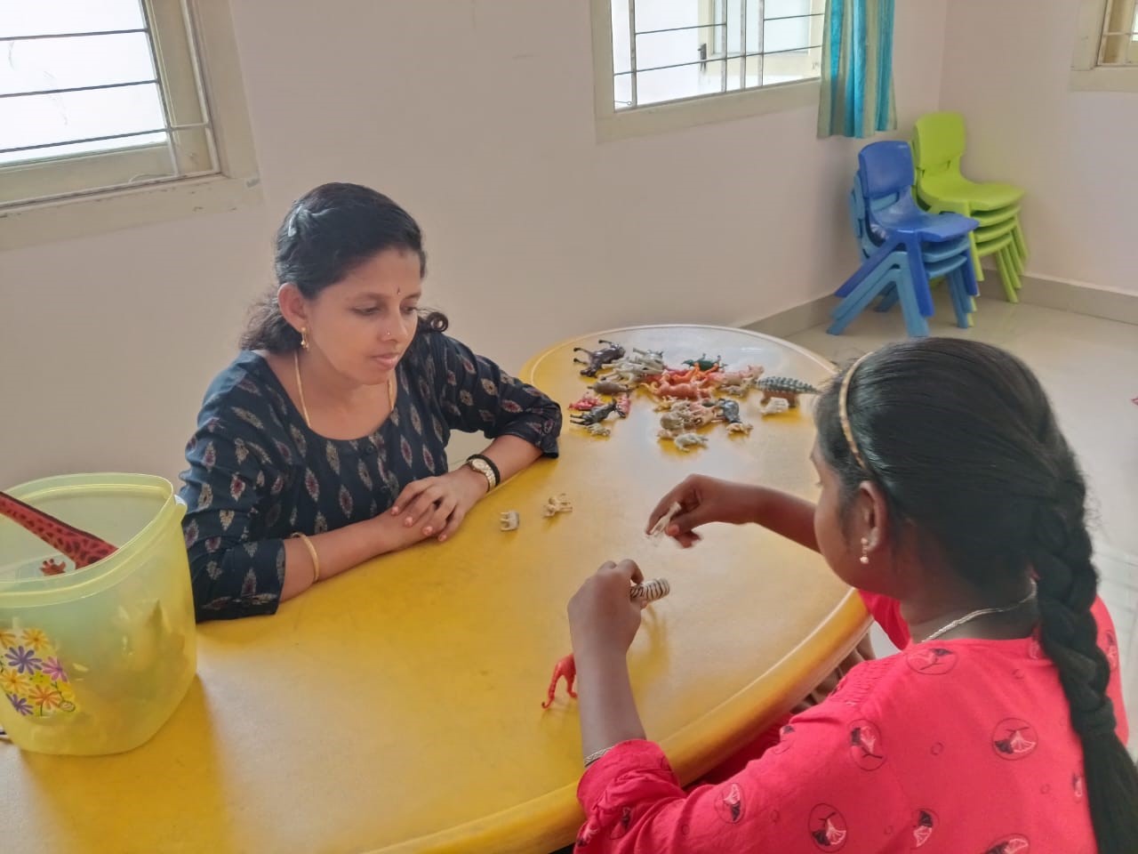 Miss Kaviya Saravanan, aged 14 years, was given consultation in the Early Intervention and V-Excel Remedial Center on January 19, 2024. The primary concerns with which she was brought in were her speech and academic performance. She was assessed and found to have challenges in addition to intellectual impairment and required occupational therapy to help regulate her sensory concerns and remedial intervention to help bridge the gaps in her learning and development. She has been taking interventions with us since March 2024.