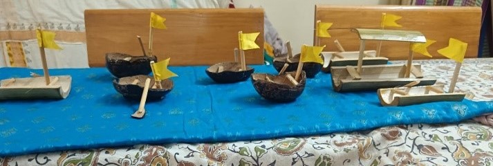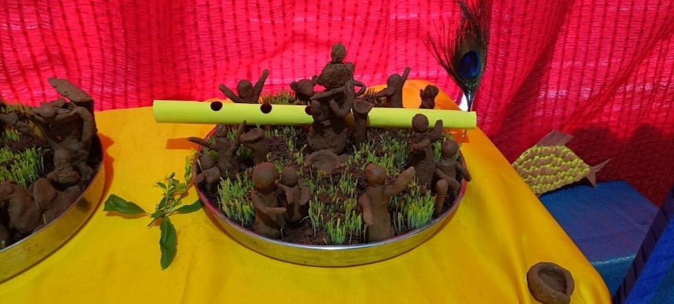 This year's Dussehra celebrations had the students make their own statues and figures with clay – Krishna, the Gopika's and the cows, which were on display in the Golu along with the Greek ships which participated in the War of Troy which they learnt about. Songs were sung and a pooja was performed. It also marked the end of stories in different grades, where the students and teachers performed dances and a drama of their main lessons. Dance about Dashavatar from Grade 3, Greek dance and the march to the war of Troy and a short drama of the life of baby Krishna who escaped the jaws of death from Putana the demoness sent by Kamsa.