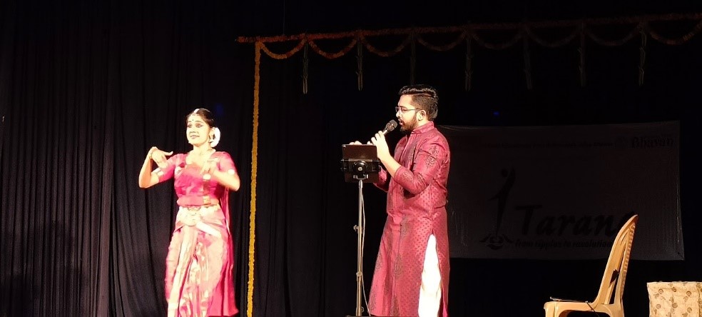 VTU attended September month Tarang at BVB on Thursday, 12th Sept. It was a wonderful program where Sai Vignesh and his wife a Bharatnatyam dancer, performed. The performance of the duo was stunning. Her expressions especially for the song about different kinds of ‘laughter' was appreciated by the trainees.