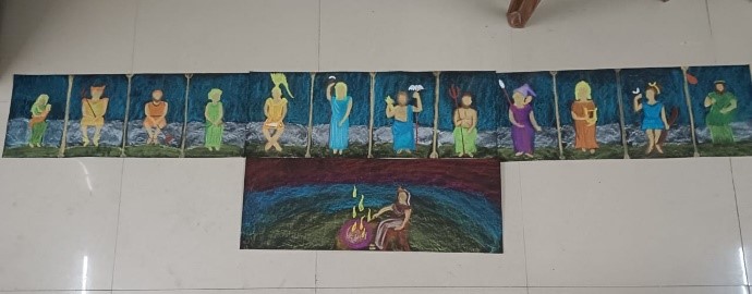 Grade 5 – Greek civilization their Gods, and the story of The Trojan War – the reasons for it, the process and the culmination of the war – Achilles, Hector, Helen and Paris the protagonists were learnt by the students. In relation to this they visited Mahabalipuram, worked on making Ships that the warriors sailed on, practiced and performed a Greek dance and marched to war on their ships which they performed on the last day of the term.